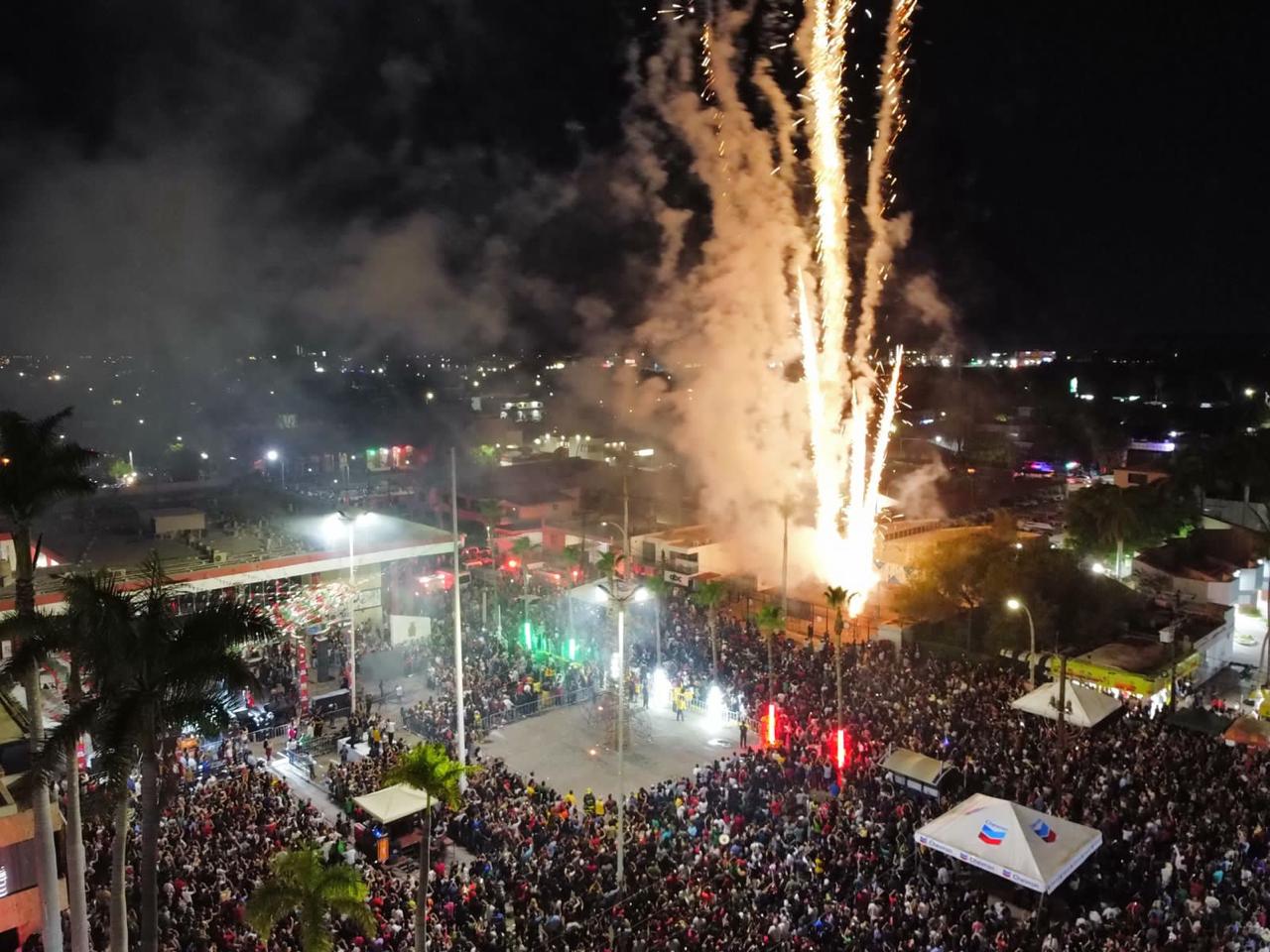 *La explanada de Palacio Municipal lució repleta de familias que disfrutaron de la Fiesta Mexicana y la espectacular quema del castillo realizada por artesanos de San Miguel Zapotitlán…