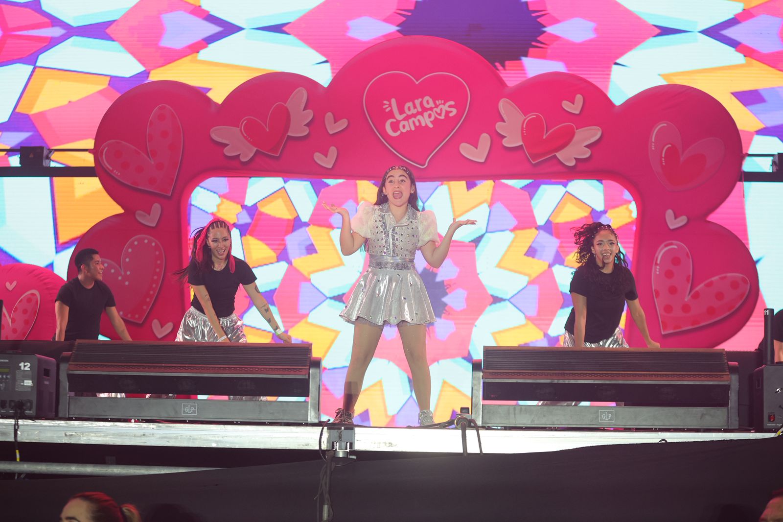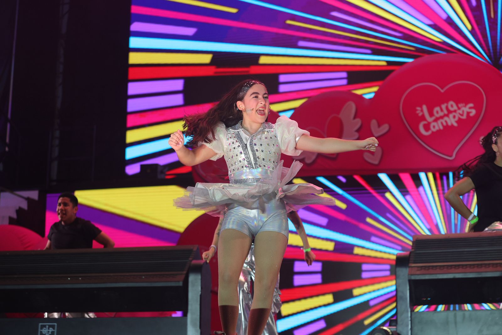 Lara Campos fue la primera en aparecer en el escenario, contagiando a chicos y grandes con su dulzura y pegajosas melodías.