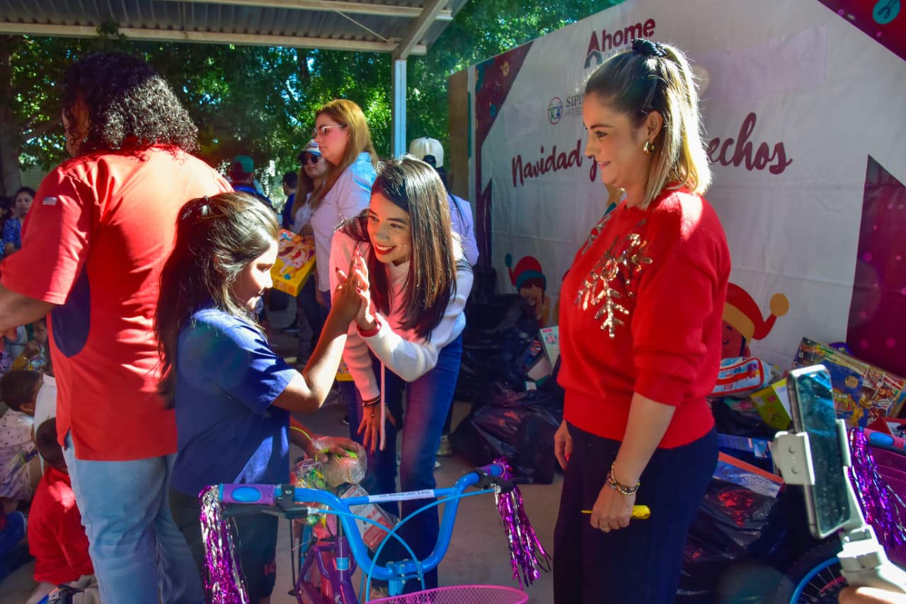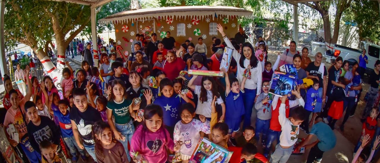 Los Almacenes, Ahome, Sinaloa. – Gracias a donativos de ciudadanos comprometidos con el servicio comunitario, alrededor de 270 niños y niñas de las comunidades de Los Almacenes, Campo 35, Campo 1, La Arrocera y otras ubicadas en el Lateral 18 de Los Mochis, tuvieron Posada Navideña y recibieron regalos personalizados de un grupo ciudadano empresarial que pidió omitir sus datos, pero que dijo seguirá contribuyendo con la comunidad a través de las dependencias del Ayuntamiento de Ahome, con este tipo de actividades, para el bienestar de las familias en situación vulnerable.