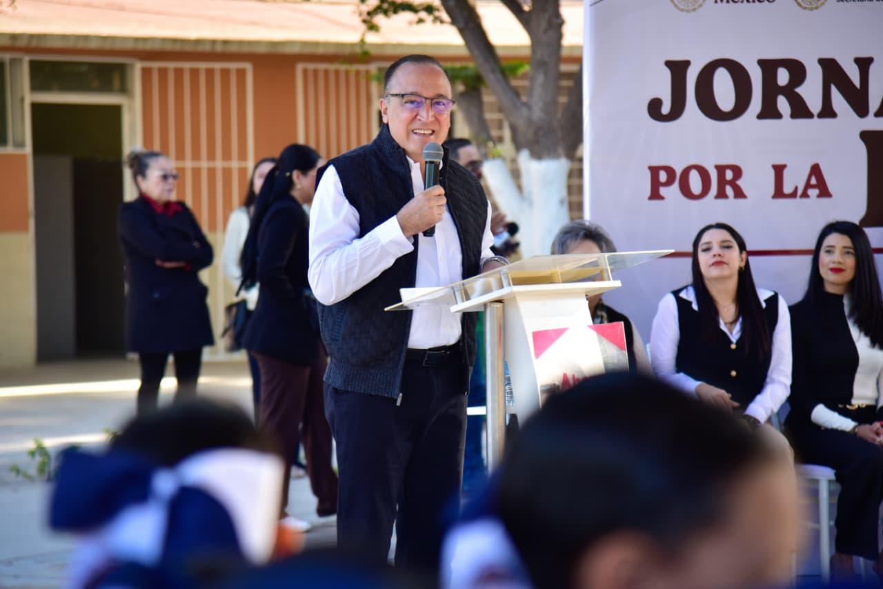 El Alcalde añadió que el trabajo se realiza en sintonía con el Gobernador Rubén Rocha Moya y la Presidenta de México, Claudia Sheinbaum Pardo, al impulsar una educación con sentido social y humanista, para que cada estudiante crezca con bienestar, esperanza y orgullo de ser mexicano.