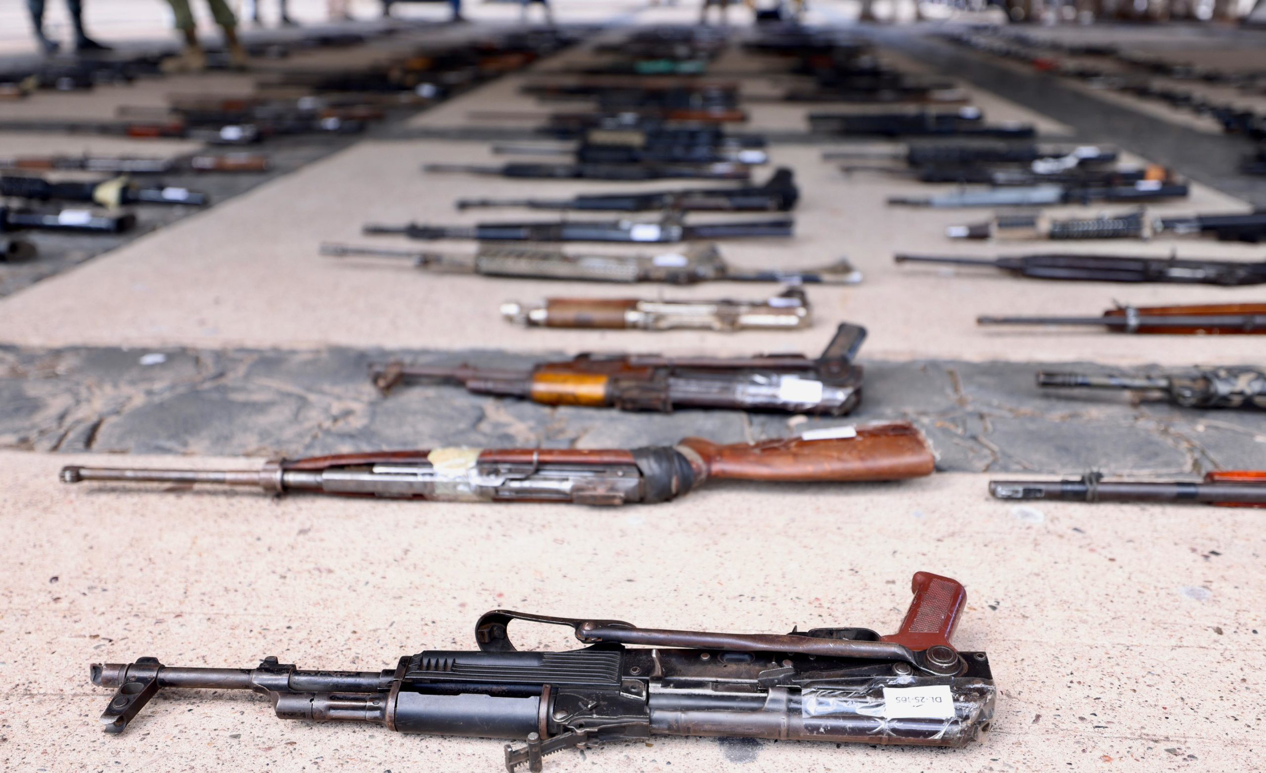 El acto tuvo lugar en la explanada de Palacio de Gobierno este miércoles, donde personal militar destruyó mil armas de fuego, entre rifles y pistolas que fueron decomisadas y aseguradas en diversos operativos de seguridad, y que forman parte de una jornada nacional donde de manera simultánea en todo el país, se procedió a la destrucción de 8 mil 800 armas, entre largas y cortas.