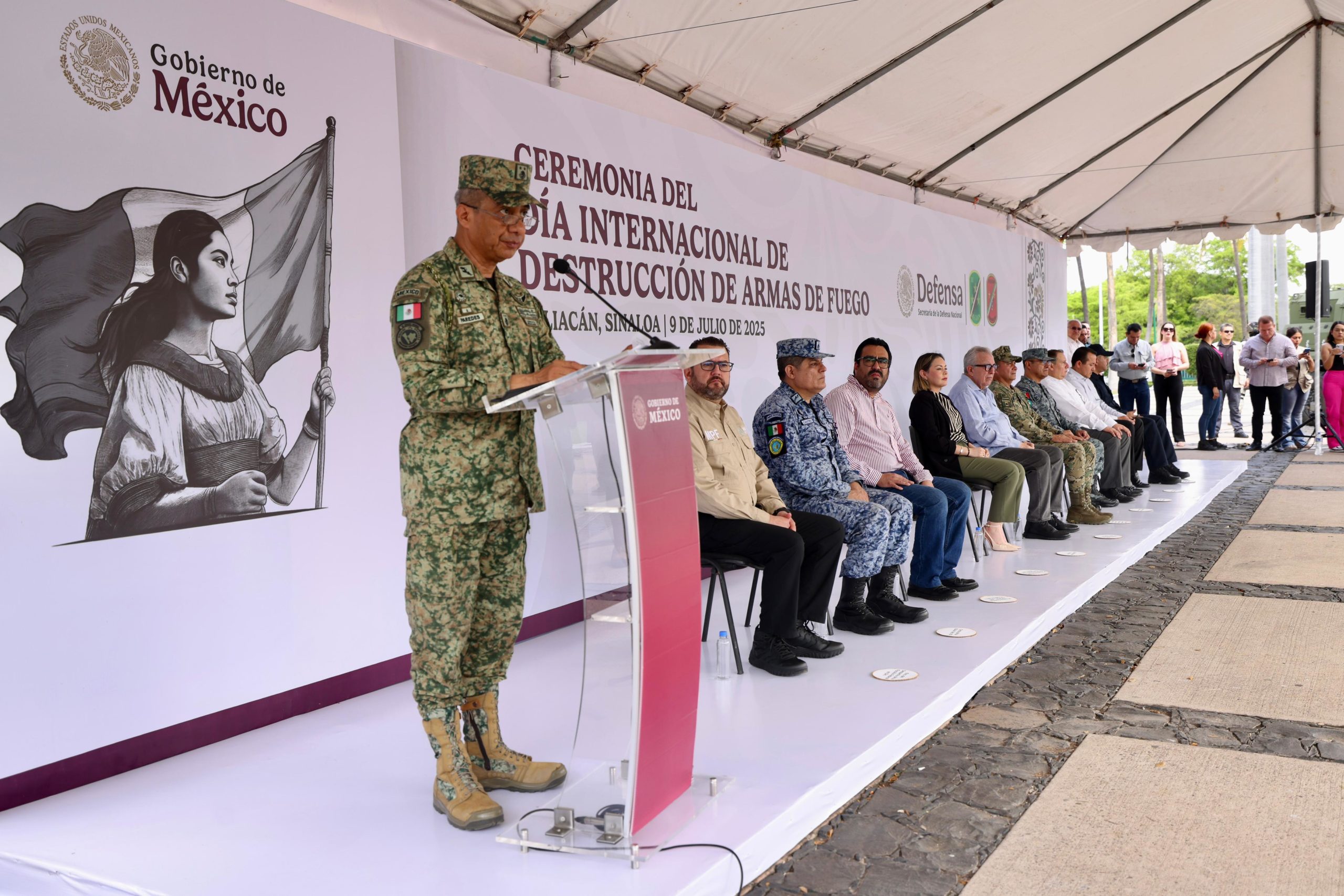 Correspondió al general de Brigada, Juan Reyes García Paredes, Jefe de Estado Mayor de la Tercera Región Militar, dar conocer que la destrucción de este armamento se enmarca el Día Internacional de Destrucción de Armas de Fuego, y que es un acto que no sólo representa una acción operativa, sino también un firme compromiso con la paz, la legalidad y la seguridad nacional.
