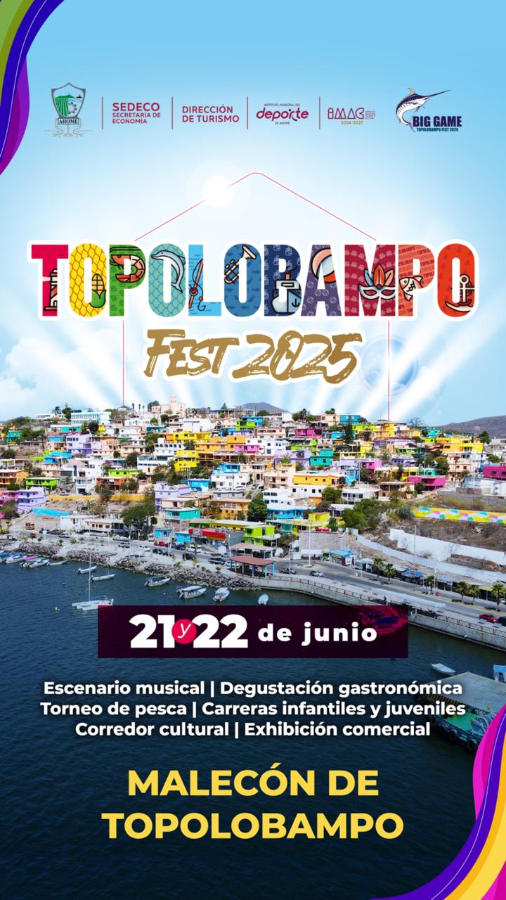 Los Mochis, Ahome, Sinaloa. –Con la meta de congregar a más de 12 mil asistentes y alcanzar una derrama económica de 1.3 millones de pesos, todo está listo para el Topolobampo Fest 2025 en el malecón del puerto el fin de semana del 21 y 22 de junio.