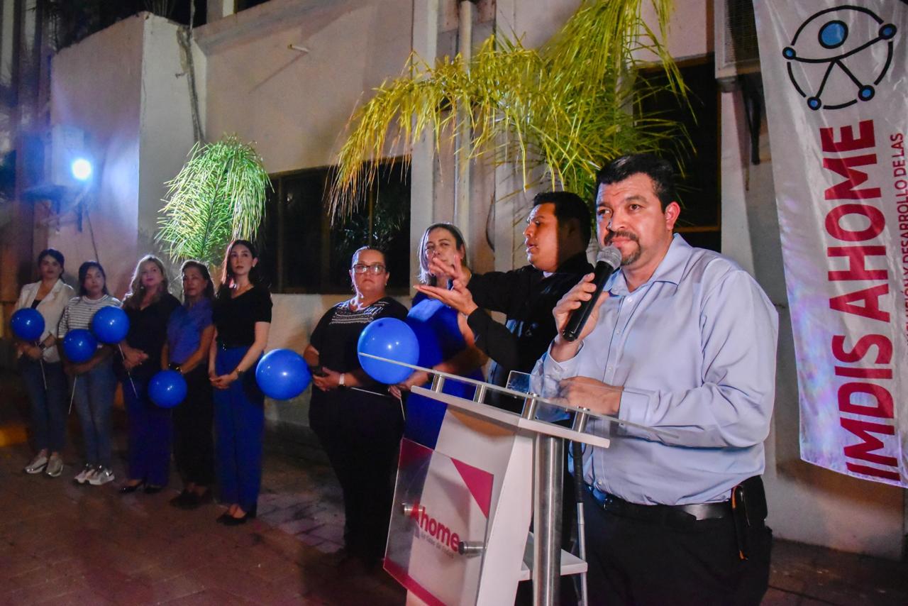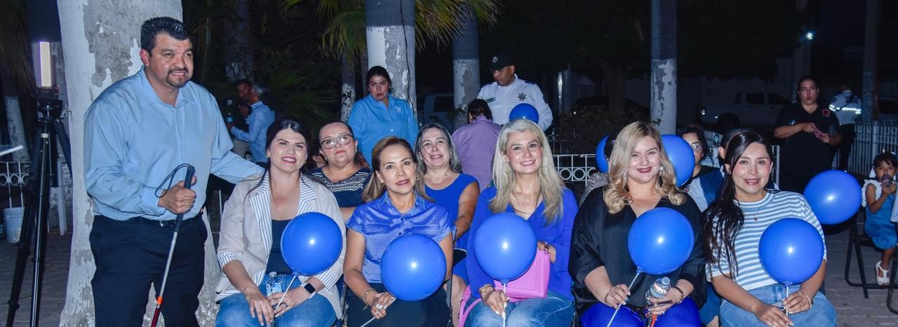 Los Mochis, Ahome, Sinaloa. – Autoridades y ciudadanos se reunieron este día lunes 13 de abril en los patios de palacio municipal para encender luz de color azul en el edificio del Gobierno Municipal, en conmemoración del Día Internacional de Concienciación por el Espectro Autista.