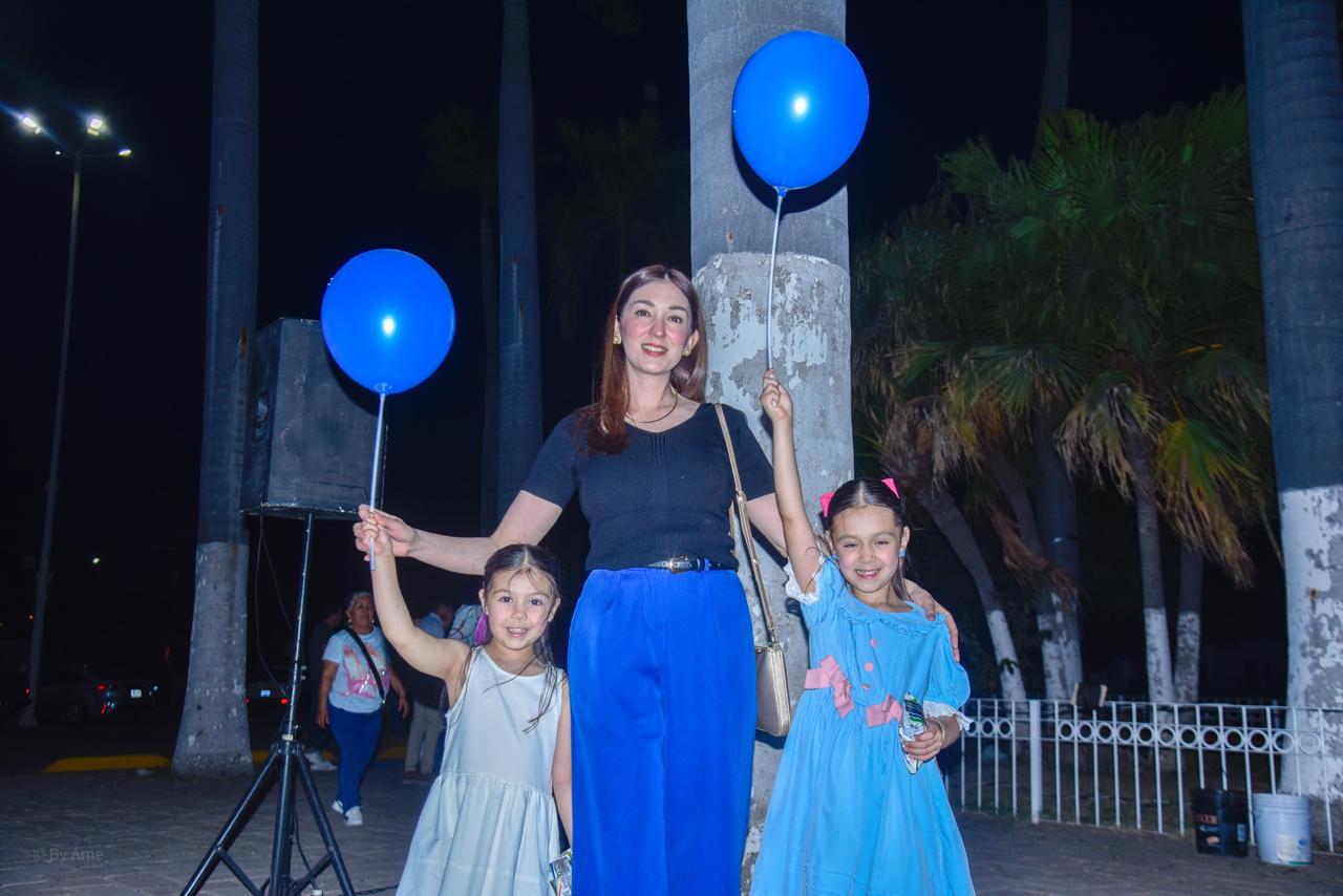 Por su parte las señoras Blanca Solano, Presidenta de la Agrupación La Casita Azul Autismo Los Mochis, y Corina Favela, madre de familia de infante en condición de autismo, dijeron en breves palabras, pero muy emocionadas, que esta acción no es solo encender la luz azul, sino que representa el compromiso de caminar a lado de este sector de la sociedad.
