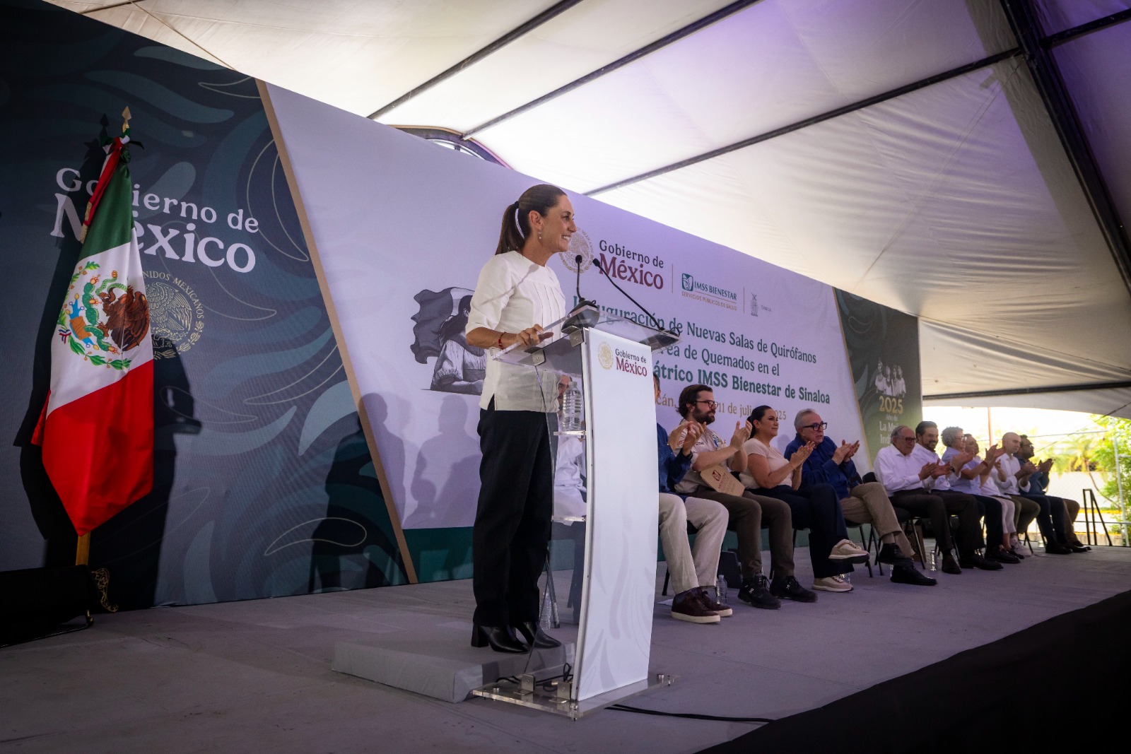 Hoy estamos aquí en Culiacán para inaugurar esta unidad especial para niñas y niños quemados, y cuatro quirófanos especializados, tienen la última tecnología, el último equipo, pero sobre todo tienen a las mejores médicas, médicos, enfermeras y enfermeros, trabajadores de la salud”, reconoció.