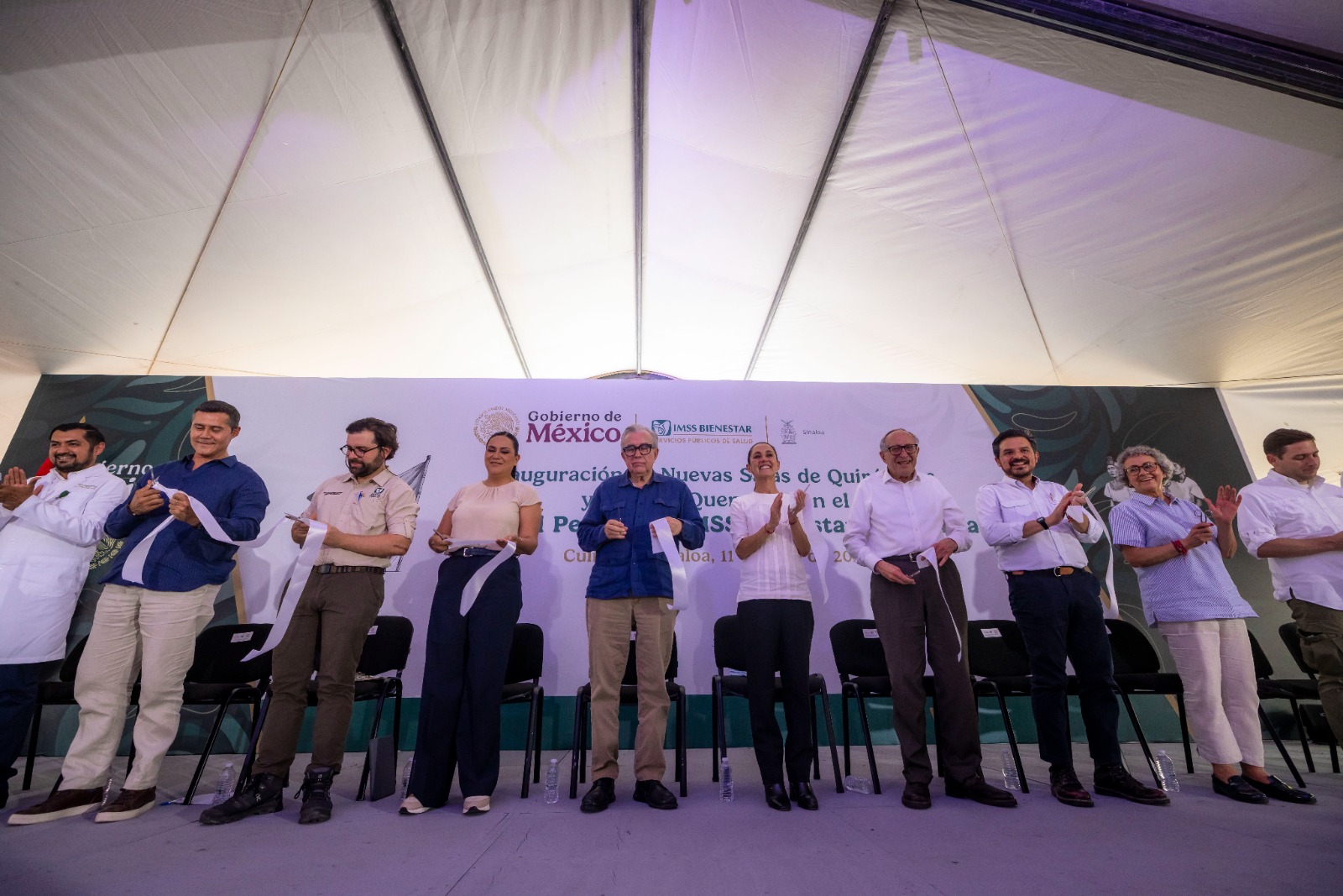 Culiacán, Sinaloa. – En su tercera vista a Sinaloa, la presidenta de la República, Claudia Sheinbaum Pardo, acompañada por el gobernador Rubén Rocha Moya, inauguró las nuevas salas de quirófanos y un área para la atención de niños quemados en el Hospital Pediátrico de Sinaloa, nosocomio que fue totalmente sustituido, con una inversión de 508 millones de pesos, y que ahora brinda nuevos servicios, como un aérea de hemodiálisis pediátrica para niños con insuficiencia renal crónica.