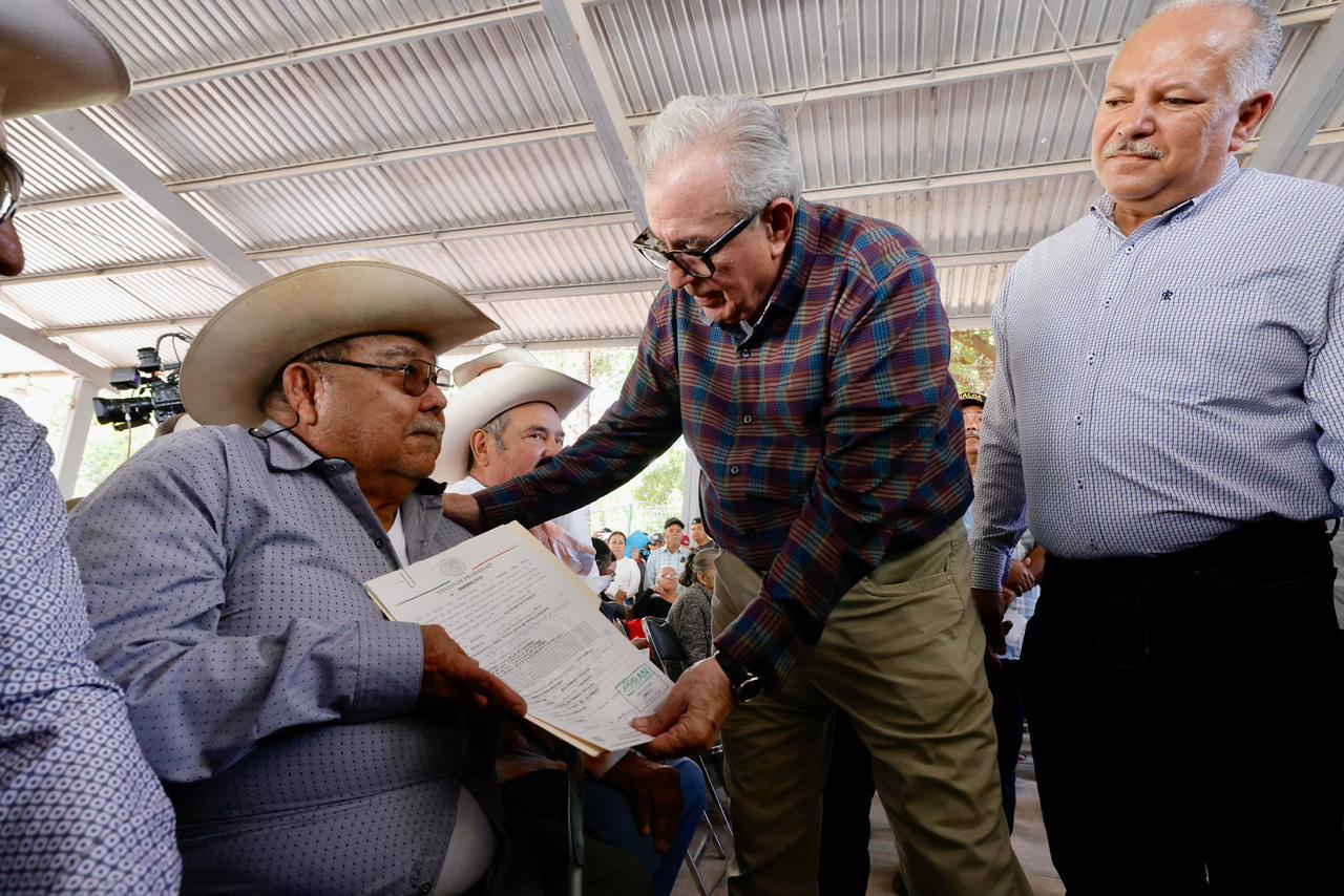 2 mil 122 títulos de propiedad y 957 certificados parcelarios, por parte del RAN; así como 108 escrituras públicas por parte de la CVIVE; beneficiando a 3 mil 187 familias de comunidades como Sinaloa de Leyva, Agua Escondida, Rancho Nuevo, El Palmar de los Sepúlveda, El Caimán, Mazocari, Matapan, La Higuerita, Santiago de Ocoroni, Cubiri de la Capilla, El carrizo de San Pablo, San Bruno, El Zapote, entre otras, lo que refleja el compromiso humanitario del gobernador Rubén Rocha Moya.