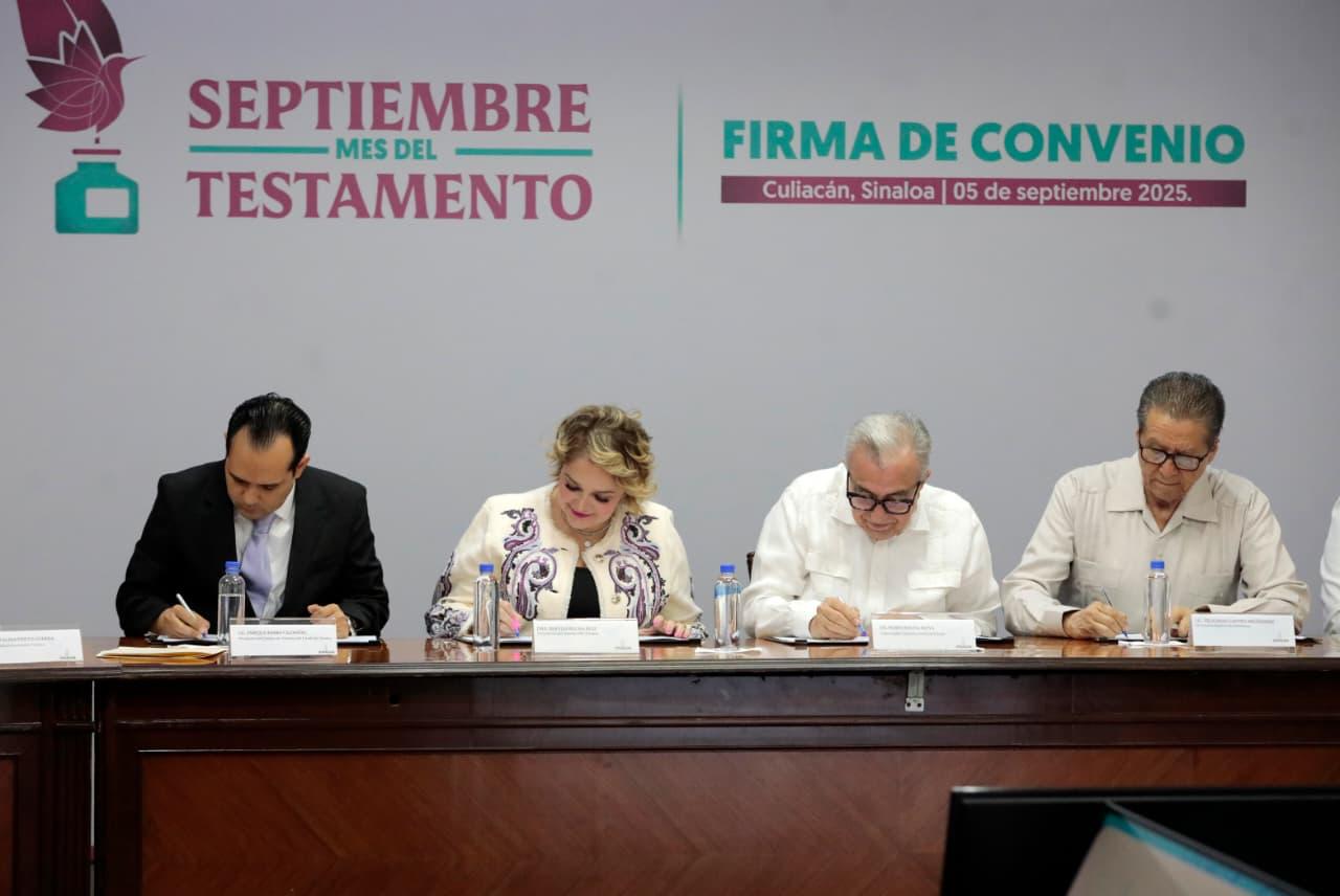 *El mandatario estatal signó con el Consejo de Notarios el convenio “Septiembre mes del Testamento”, para heredar tranquilidad y certeza jurídica al patrimonio de las familias sinaloenses; se otorgarán trámites gratuitos a mujeres en situación de vulnerabilidad