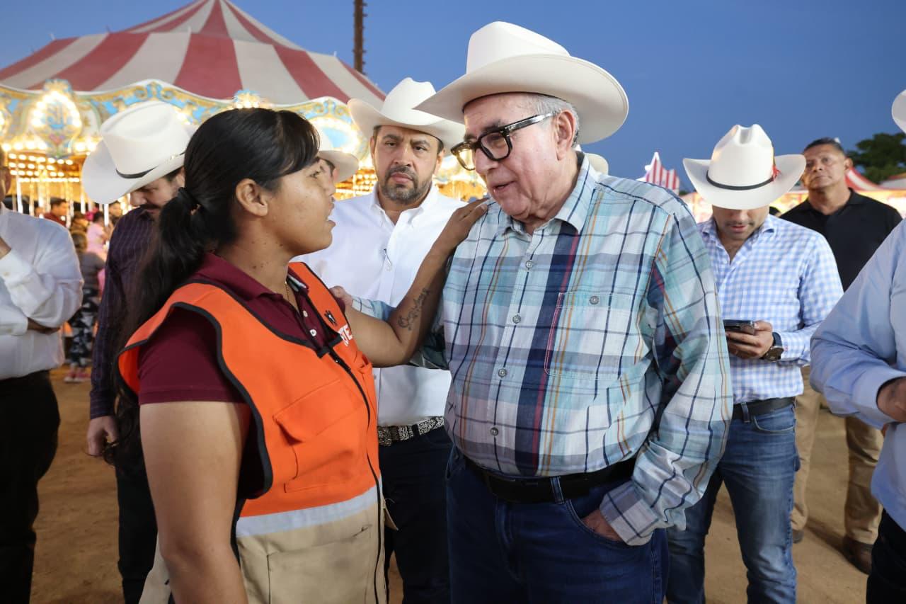 Culiacán, Sinaloa. – Después de compartir la tarde de este jueves en la celebración del Dia del Ganadero, el gobernador Rubén Rocha Moya, acompañado de representantes del gremio y funcionarios, recorrió las instalaciones de la Expo Ganadera 2025, donde visitó las diferentes galeras de exposición de ganado y juegos mecánicos, constatando el ambiente familiar que se vive en esta popular fiesta, muy esperada por las familias culiacanenses.