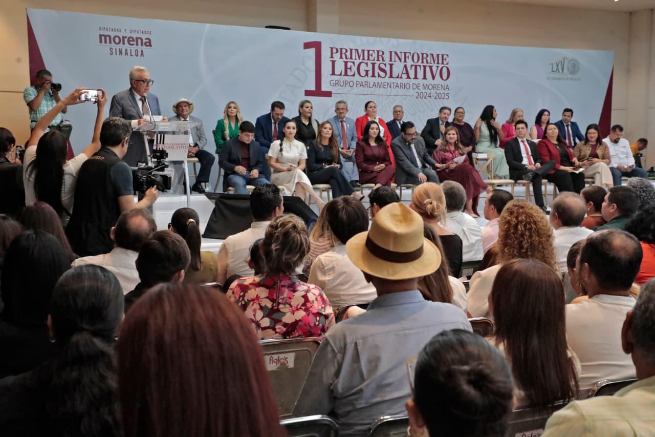 Por eso aquí venimos a rendirles cuentas, a fortalecer la transparencia, a decirles que como grupo parlamentario nos sentimos muy orgullosos de hacer equipo con grandes alcaldes y alcaldesas, de hacer equipo con las diputadas y diputados federales, de seguir haciendo equipo en la LXV Legislatura y equipo con el gobernador del estado, aquí estamos de frente, refrendando compromisos, porque sabemos que transformar Sinaloa requiere de todo nuestro empuje, estamos haciendo la tarea”, dijo.