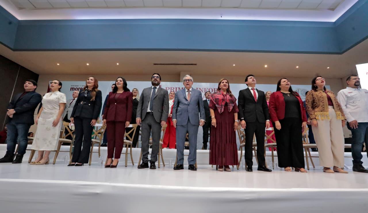 *El mandatario estatal asistió ahora el Informe que rindieron las legisladoras y legisladores locales del Movimiento de Regeneración Nacional, que representan la zona centro del estado