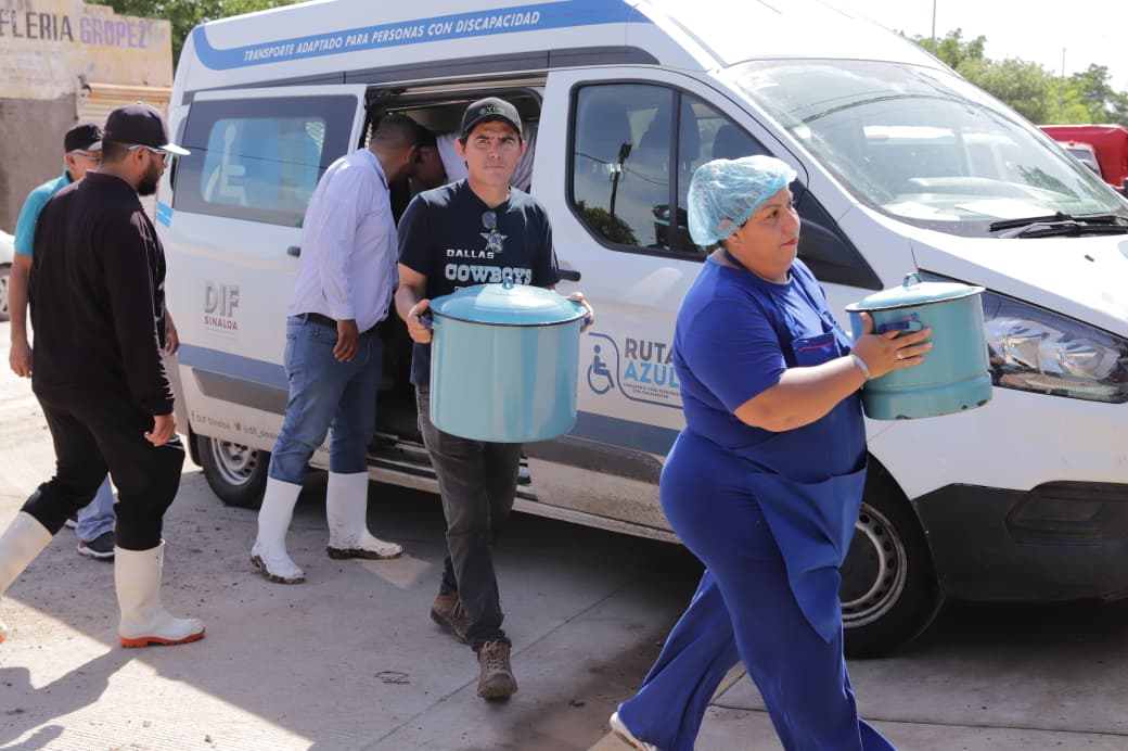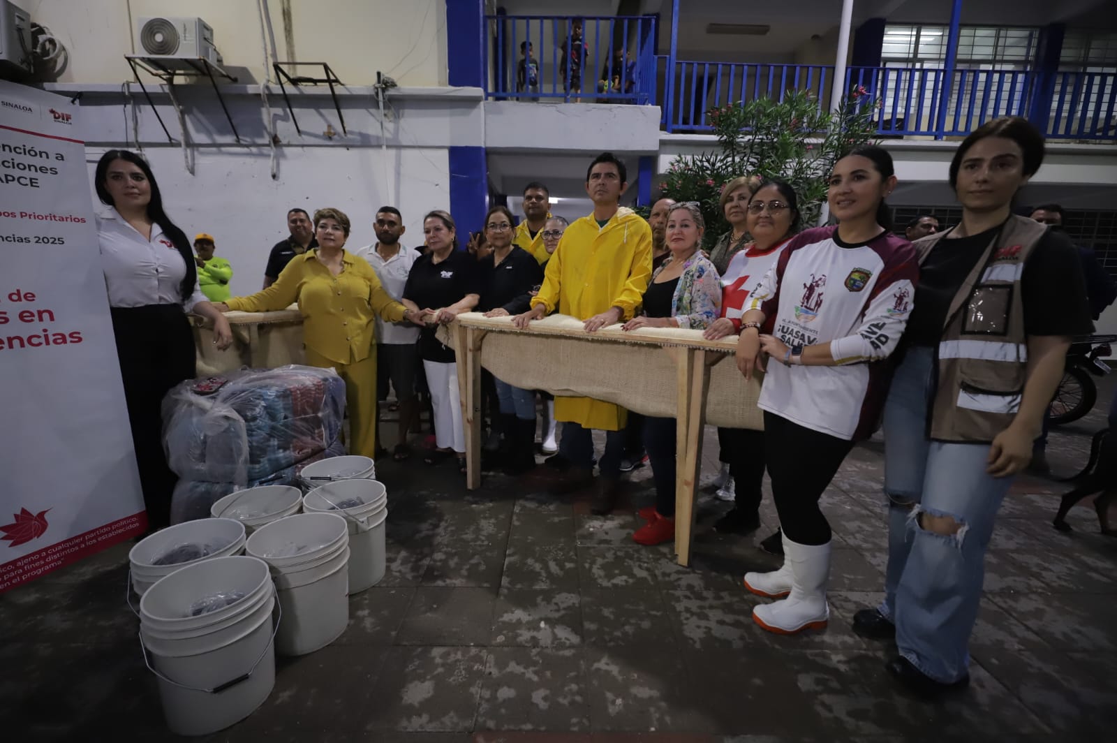 La alcaldesa destacó el apoyo de la CONAGUA, que les prestó una segunda bomba, para atender por primera vez el desagüe de calles en La Laguna; y también de DIF Sinaloa y del gobernador del estado, Rubén Rocha Moya, para la entrega de despensas, catres, colchonetas, cobijas y kits de limpieza en los refugios y en las zonas bajas afectadas por la inundación.