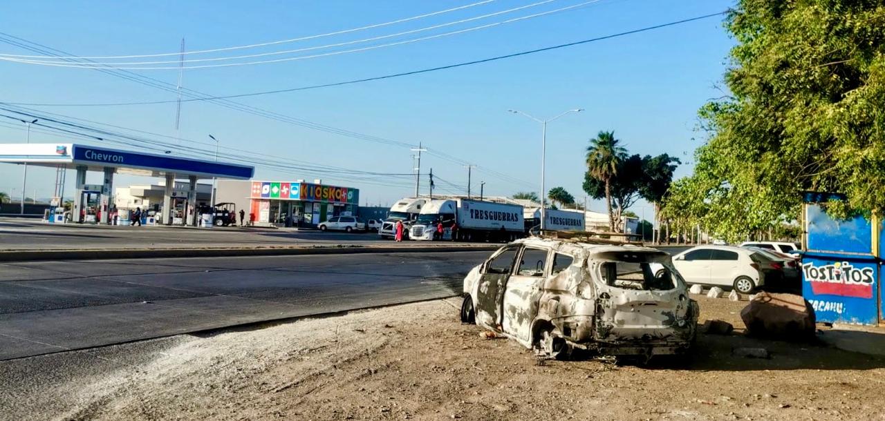 Hubo varios puntos de Los Mochis que presentaron despojo y quema de unidades motrices entre ellas vehículos particulares y camiones de carga.
