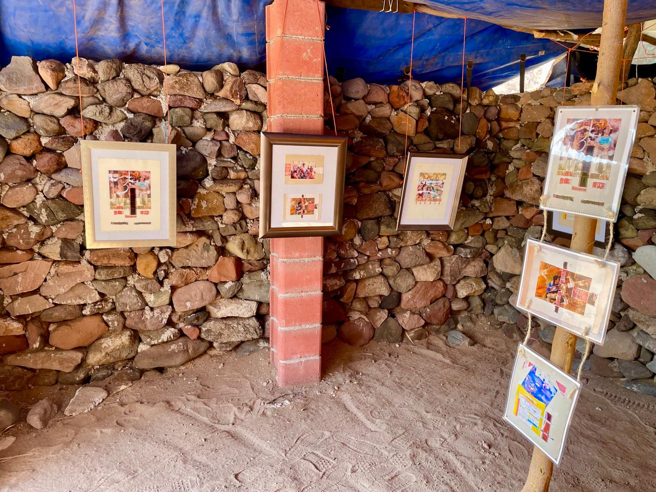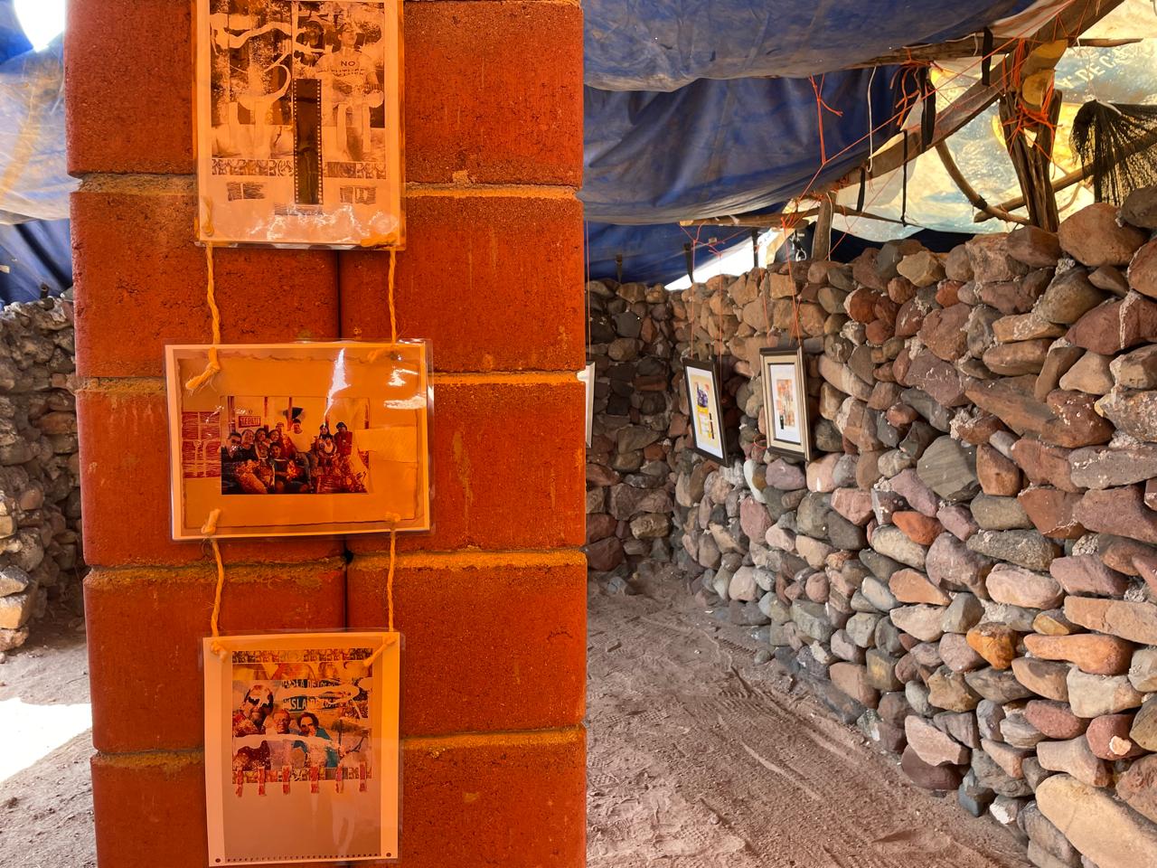 Había además tres piezas de arte móviles con impresiones Glicée y enlazadas por mecate de ixtle y una más en video reproduciéndose en una pequeña computadora, así como un altar aprovechando la piedra de la Galería.