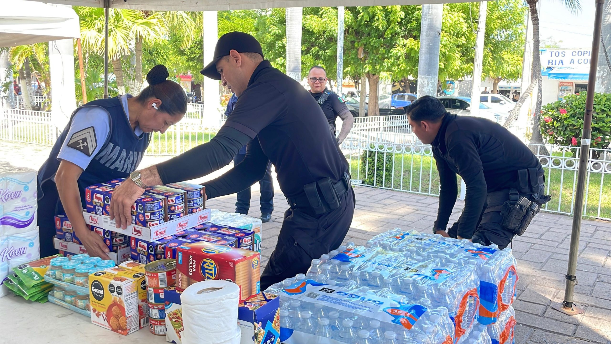 Llevaron los víveres al Centro de Acopio instalado en la explanada del Palacio Municipal, el cual es coordinado por la Secretaría de Marina