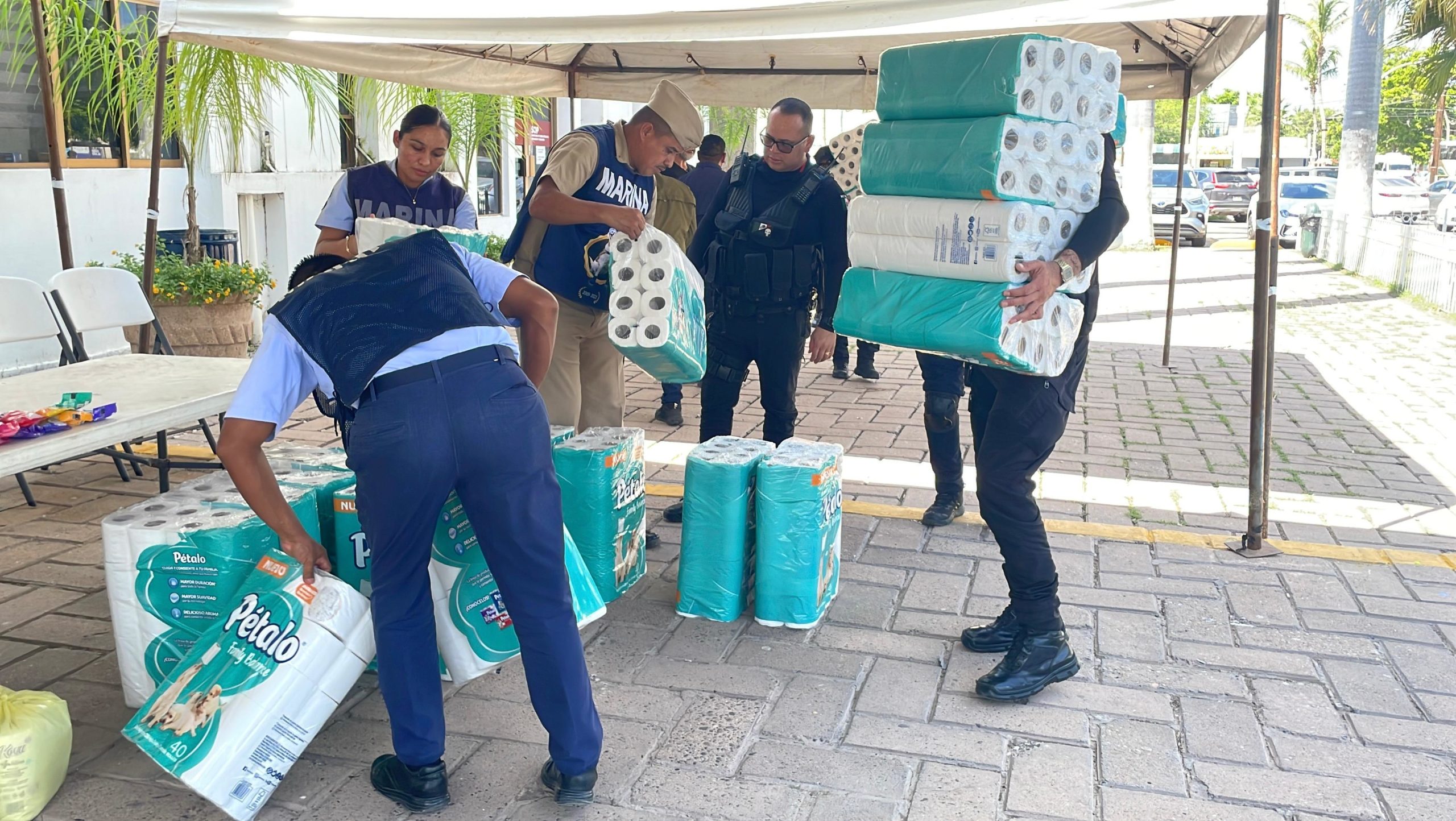 Se realizó la donación de víveres al Centro de Acopio instalado en la explanada del Palacio Municipal, el cual es coordinado por la Secretaría de Marina (SEMAR).
