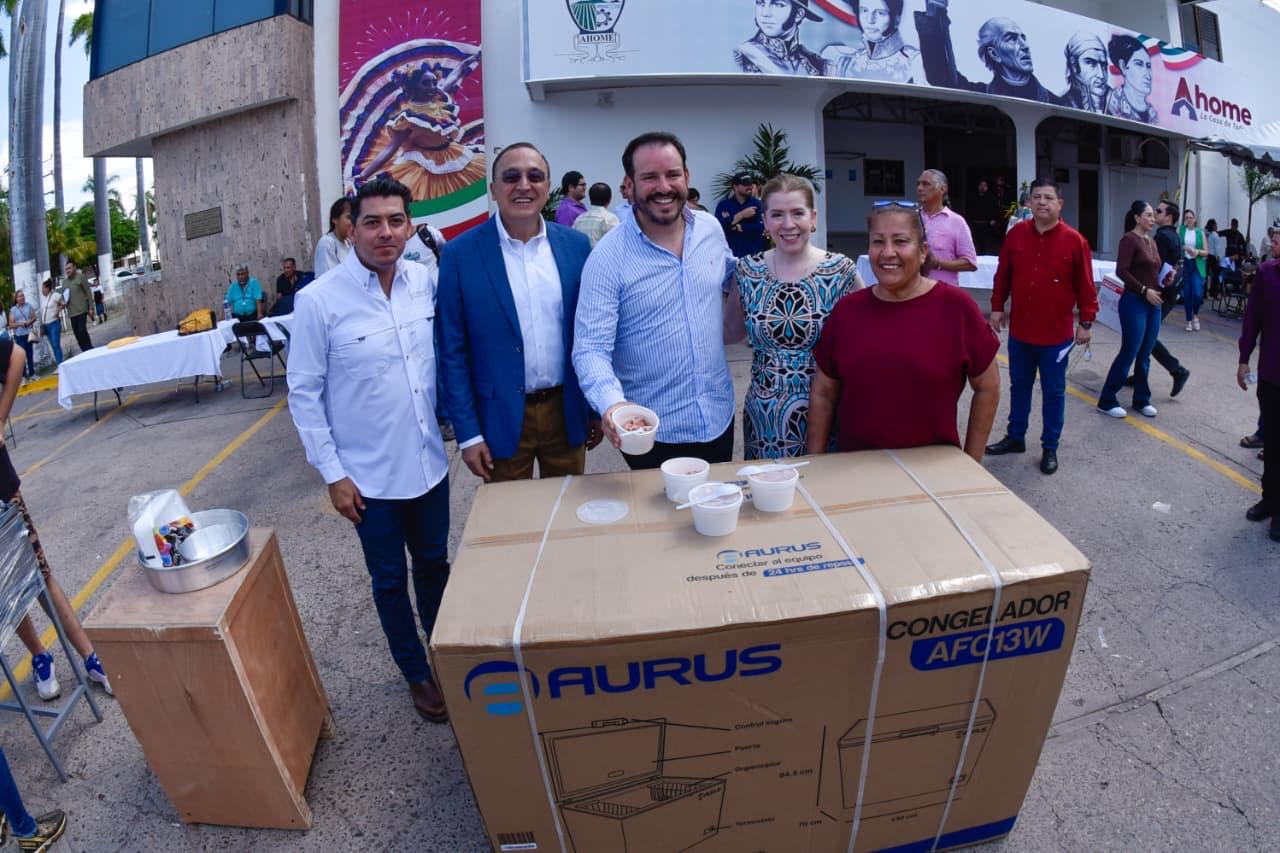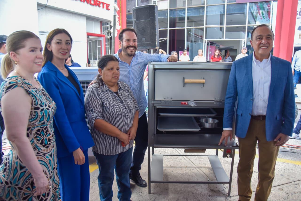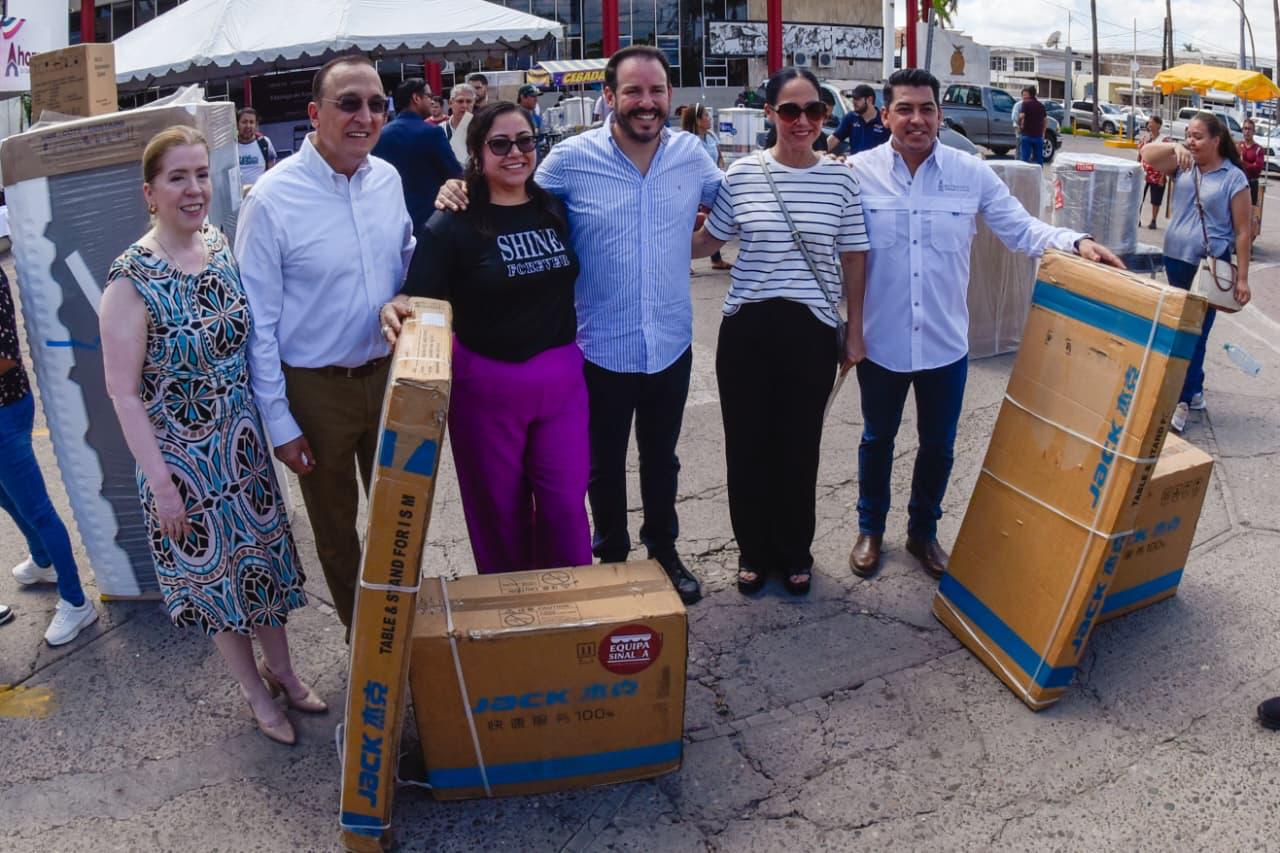 Los Mochis, Ahome, Sinaloa. – Emprendedores ahomenses recibieron equipamiento para consolidar sus negocios, como parte del programa Equipa Sinaloa. Para el emotivo evento en la explanada de Palacio Municipal se contó con la presencia del Secretario de Economía de Sinaloa, Ricardo Velarde, y el Alcalde Antonio Menéndez.