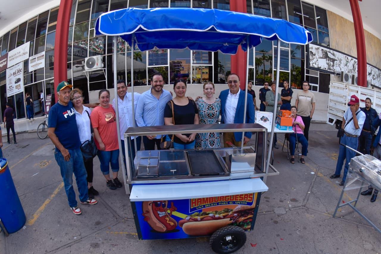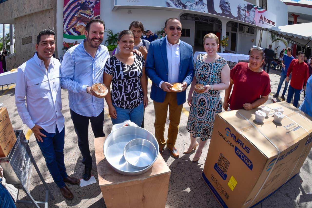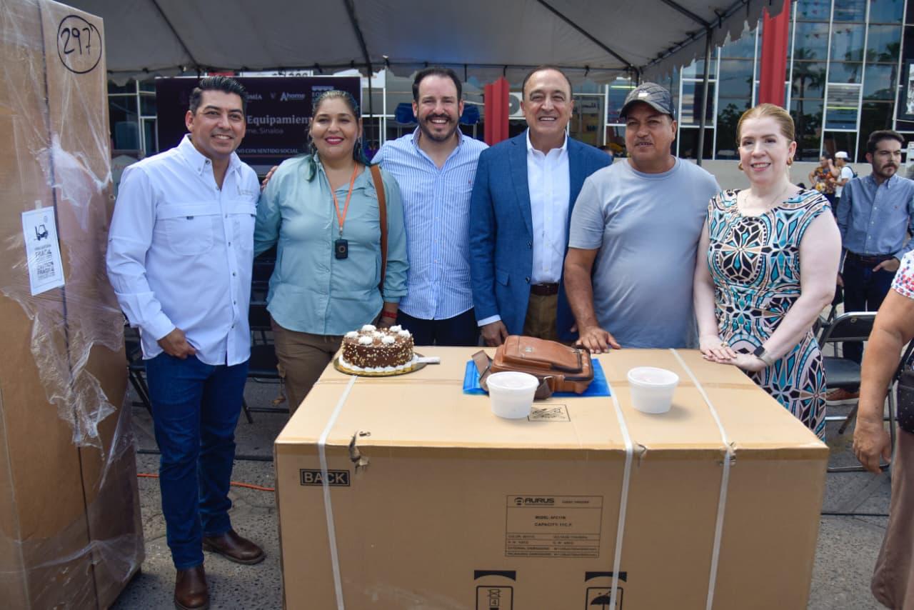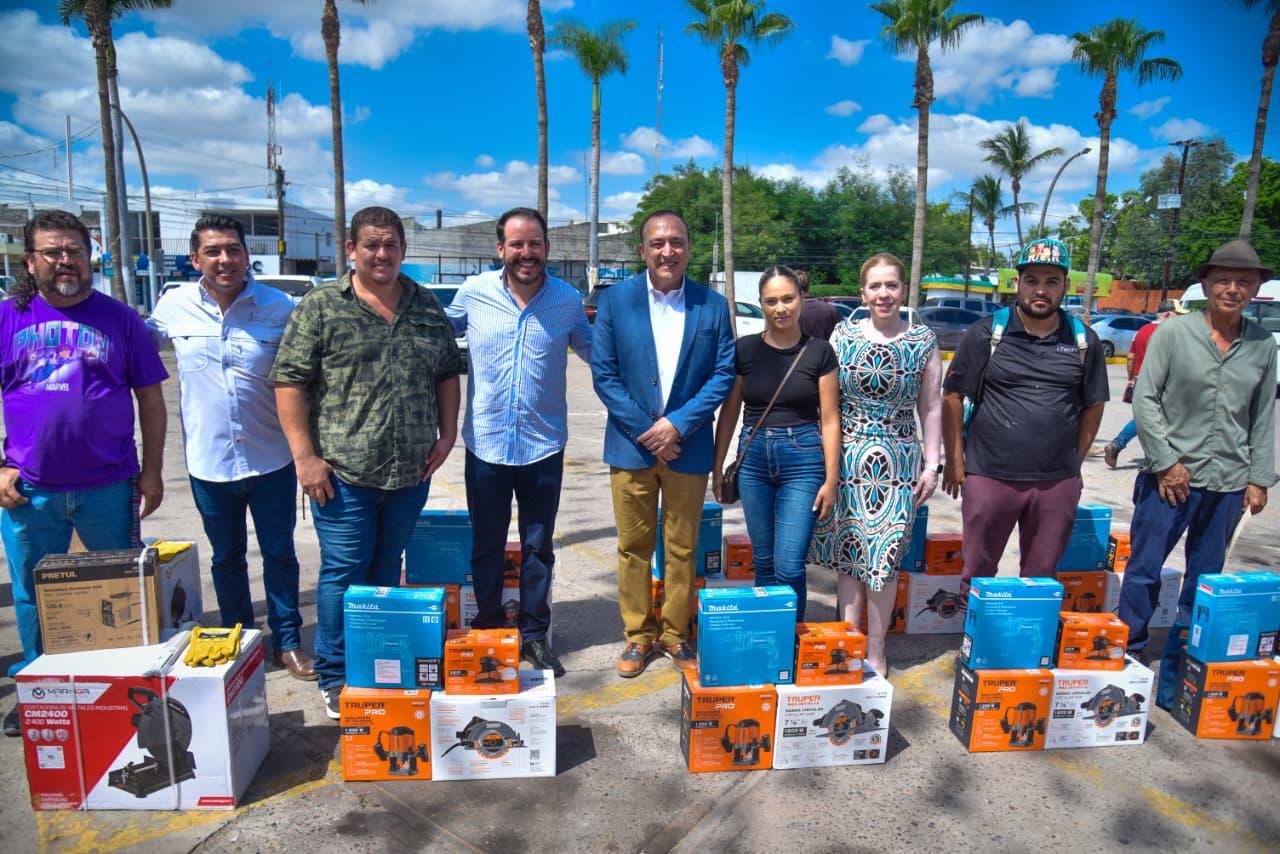 Los Mochis, Ahome, Sinaloa. – Emprendedores ahomenses recibieron equipamiento para consolidar sus negocios, como parte del programa Equipa Sinaloa. Para el emotivo evento en la explanada de Palacio Municipal se contó con la presencia del Secretario de Economía de Sinaloa, Ricardo Velarde, y el Alcalde Antonio Menéndez.