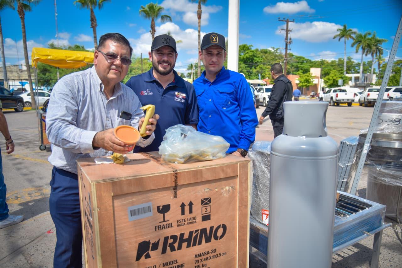 *El Presidente Municipal de Ahome, Antonio Menéndez, junto con el Secretario de Economía de Sinaloa, Ricardo Velarde, hicieron entrega de los insumos del programa Equipa Sinaloa, para que consoliden sus emprendimientos familiares