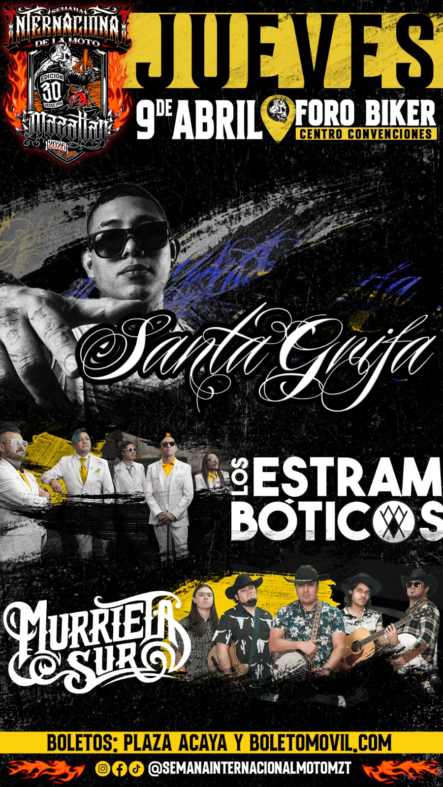 Para la edición 2026, al tratarse del 30 aniversario, se ha conformado un cartel artístico de primer nivel que incluye rock, ska y regional mexicano, con agrupaciones y cantantes que llenarán de música, adrenalina y mucha diversión la Plaza de la Moto, ubicada en el Centro de Convenciones.