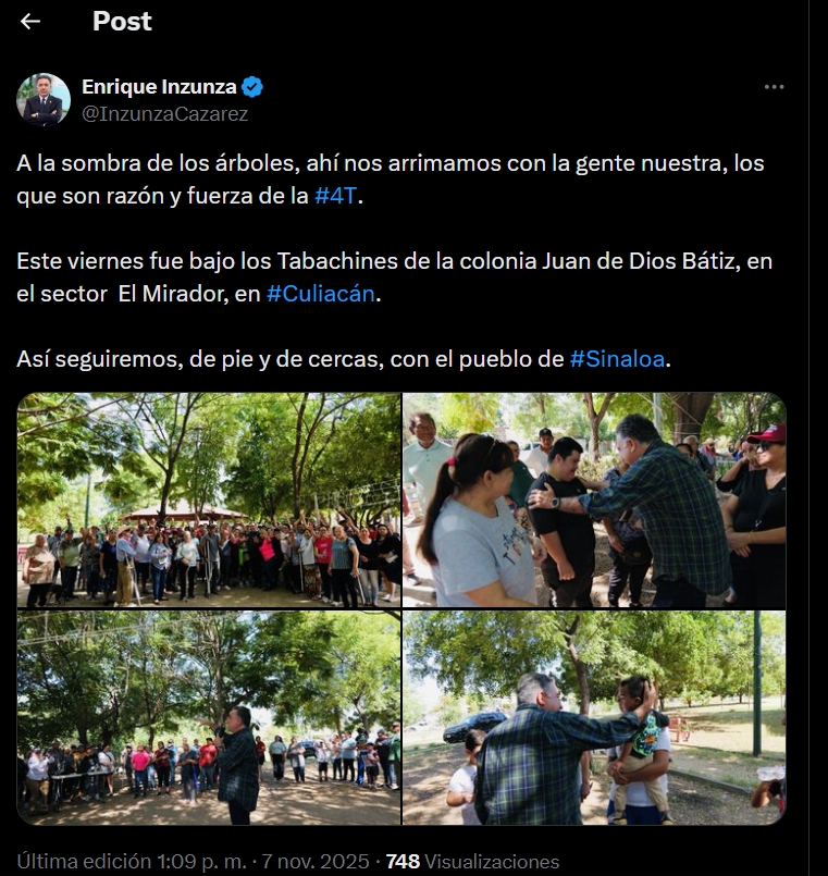En su posteo en las redes sociales Inzunza Cázarez destacó este nuevo acercamiento con la ciudadanía de Culiacán.