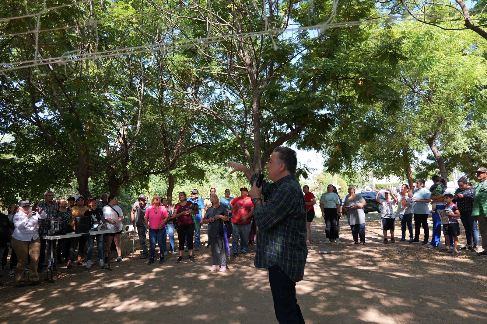Siempre aprovechando la sombra de los árboles el legislador sinaloense por Morena este viernes platicó tendido con la gente de otro punto de Culiacán para conocer, de cerca y a pie, el sentir de la población y de esa manera realizar de mejor forma su labor en el Senado.