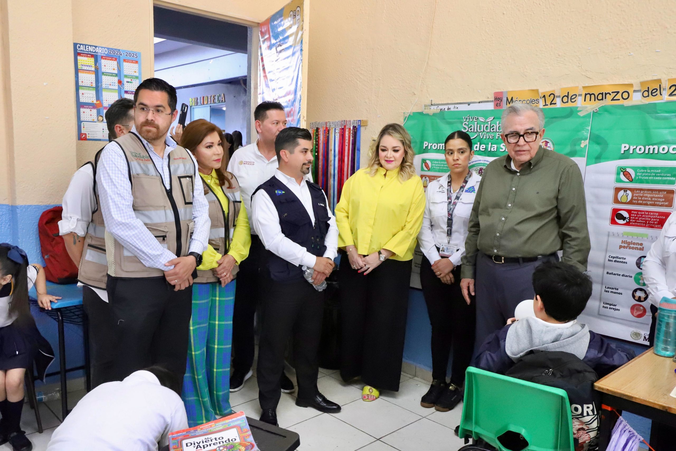 Por su parte, el secretario de Salud, Dr. Cuitláhuac González Galindo, recordó que estas acciones consisten en fomentar la sana alimentación, la higiene bucal y algún problema de salud de las niñas y niños de los planteles educativos.