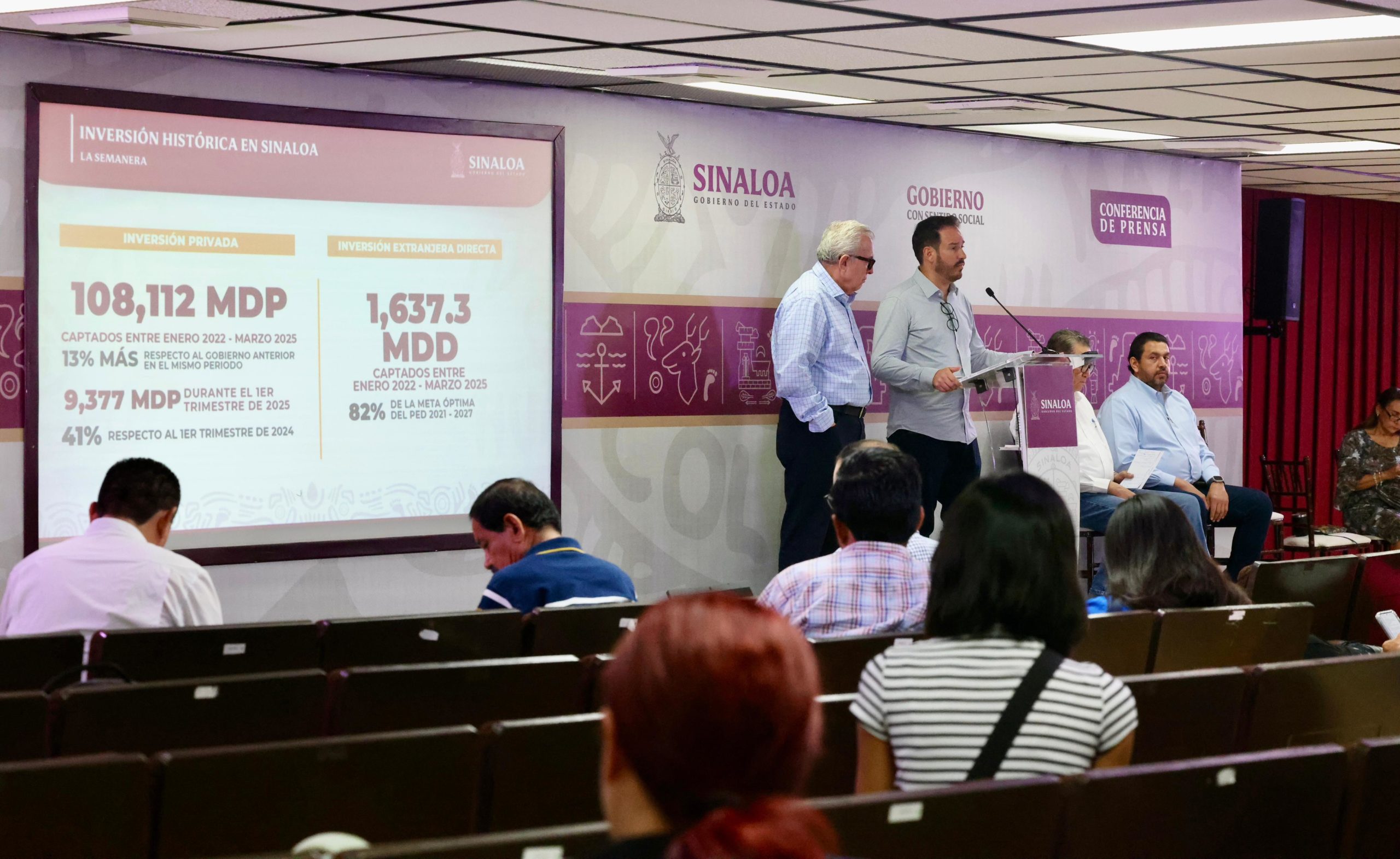 Culiacán, Sinaloa. – El gobernador Rubén Rocha Moya informó hoy durante la conferencia La Semanera que, en el primer trimestre de 2025, Sinaloa registró una inversión privada por 9,377 millones de pesos, lo que representa un crecimiento del 41% en comparación con el mismo periodo del año anterior.