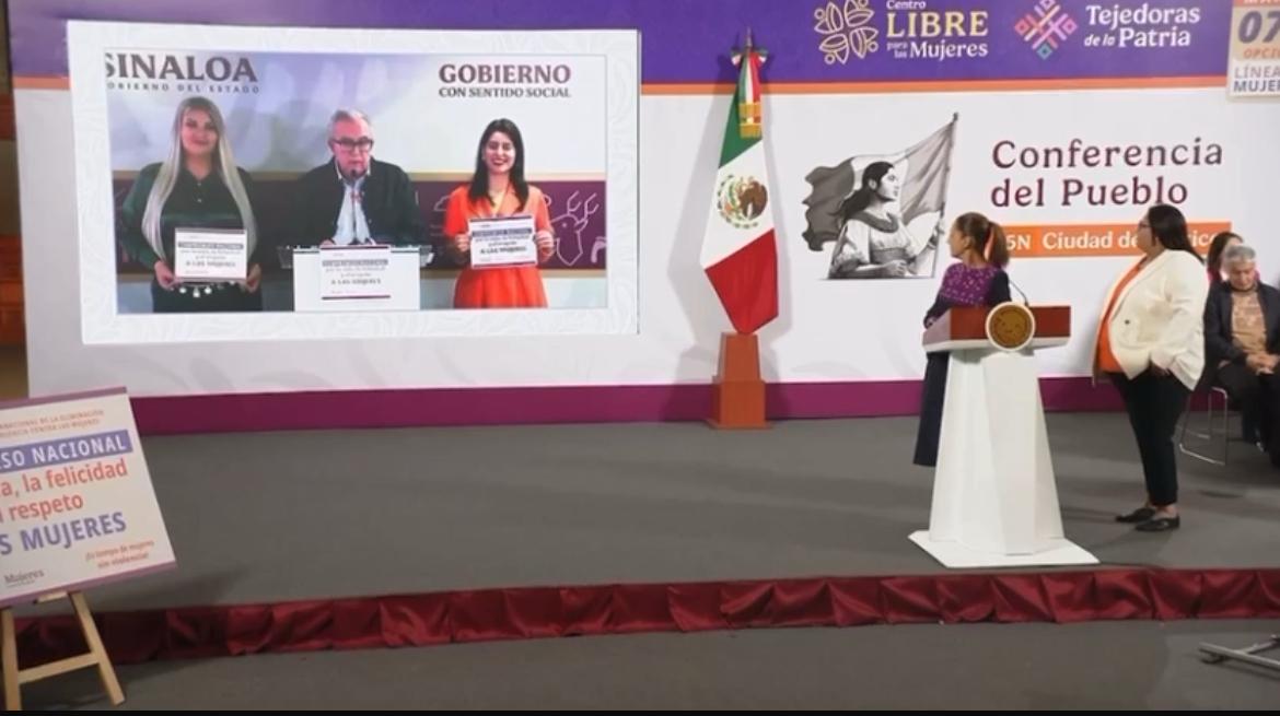 Desde Sinaloa le manifestamos que nos unimos de manera muy comprometida con todas las acciones que ha diseñado su gobierno a través de la Secretaría de las Mujeres encabezada por nuestra querida Citlalli, pero también por las legisladoras y un conjunto de mujeres extraordinarias como las que ahora le acompañan para que juntas y juntos podamos ponerle fin a la violencia contra las mujeres, las niñas y las y los adolescentes, que estén bien todas las mujeres de México, de Sinaloa”, destacó.