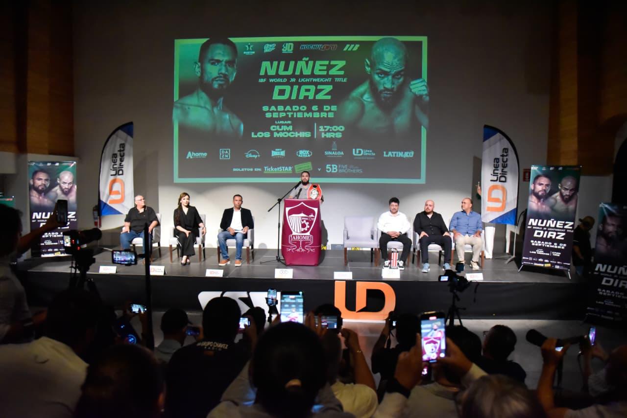 Los Mochis, Ahome, Sinaloa. – La ciudad de Los Mochis se alista para convertirse en el epicentro del boxeo internacional este 6 de septiembre de 2025, cuando el campeón mundial de la Federación Internacional de Boxeo (IBF) en la categoría súper pluma, Eduardo “Sugar” Núñez, realice su primera defensa del título frente al puertorriqueño Christopher “Pitufo” Díaz, en el Centro de Usos Múltiples (CUM).
