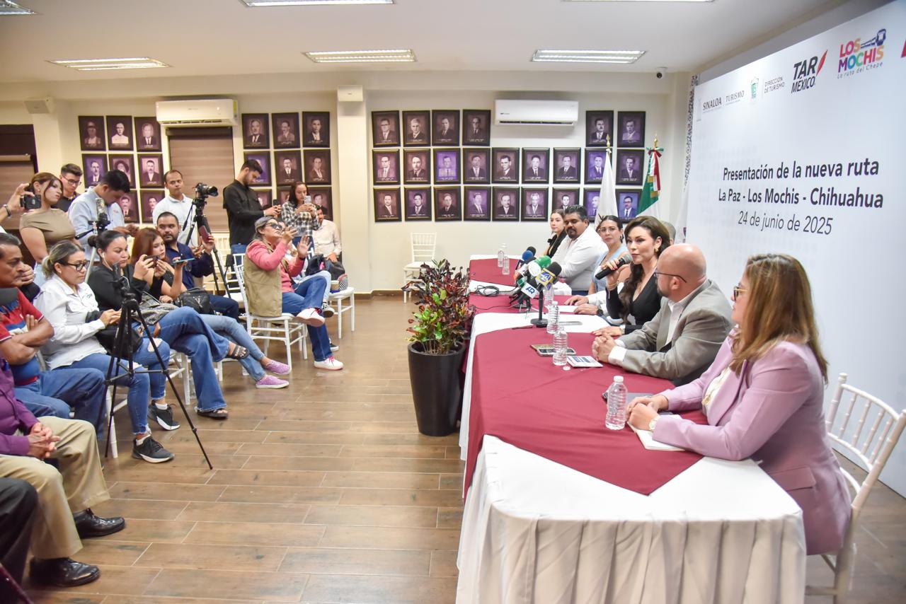 Los Mochis, Ahome, Sinaloa. –Autoridades municipales, estatales y representantes del sector turístico y aeroportuario presentaron oficialmente en Los Mochis la nueva ruta aérea La Paz-Los Mochis-Chihuahua, que será operada por TAR Aerolíneas a partir del próximo 7 de julio, con el objetivo de fortalecer la conectividad regional, impulsar el turismo y detonar oportunidades de inversión entre estos tres destinos estratégicos del norte del país.