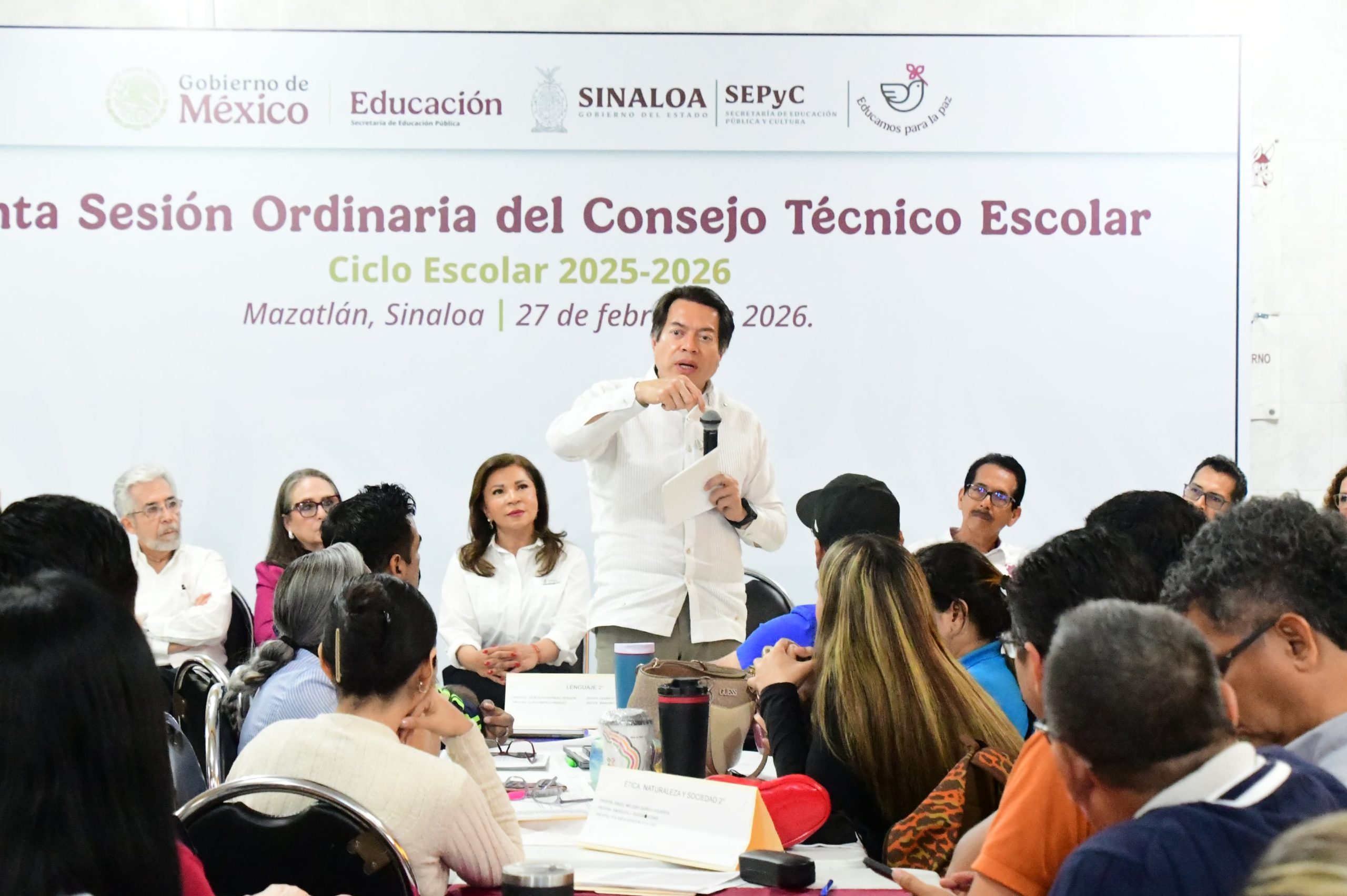 Mazatlán, Sinaloa. – En el marco de la Quinta Sesión Ordinaria del Consejo Técnico Escolar (CTE), el Secretario de Educación Pública federal, Mario Delgado Carrillo, hizo un llamado a consolidar una gran alianza entre autoridades y docentes, con el objetivo central de asegurar que cada egresado de secundaria se incorpore a la educación media superior para evitar la interrupción de sus trayectorias académicas.