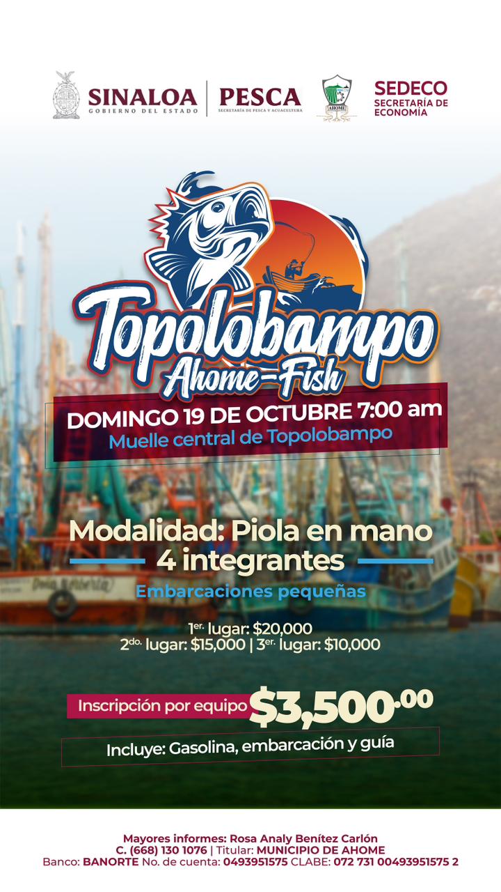 Los Mochis, Ahome, Sinaloa. –El Gobierno Municipal de Ahome, en coordinación con el Gobierno del Estado de Sinaloa, anunció los últimos preparativos del Torneo de Pesca Deportiva Topolobampo Ahome Fish 2025, que se celebrará este domingo 19 de octubre de 7:00 de la mañana a 3:00 de la tarde en el muelle central del puerto.