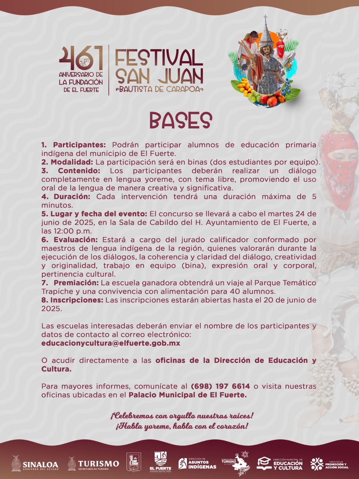 El Fuerte, Sinaloa. – En el marco del 461 aniversario de la fundación de El Fuerte, el Ayuntamiento prepara el tradicional Festival de San Juan Bautista de Carapoa, una festividad emblemática que celebra la identidad, la fe y la cultura viva de los pueblos originarios de la región.