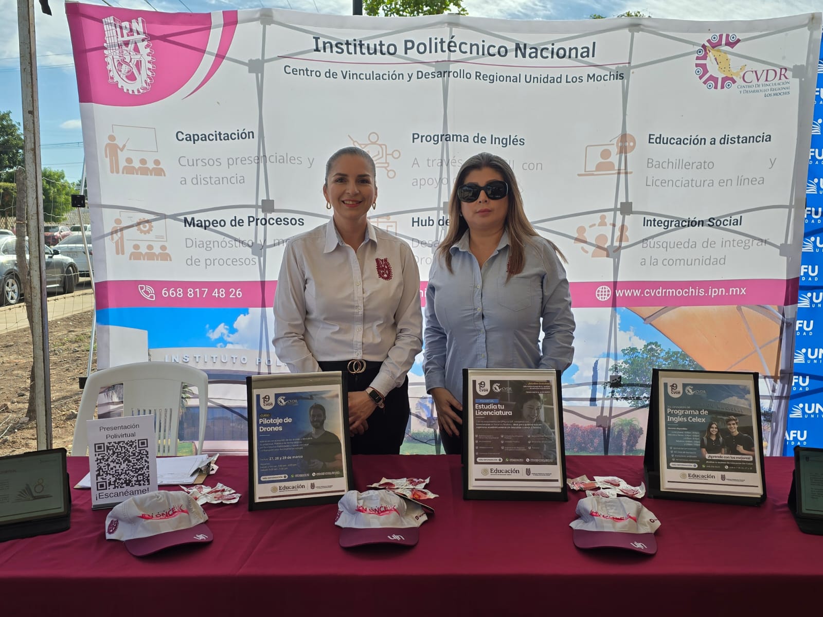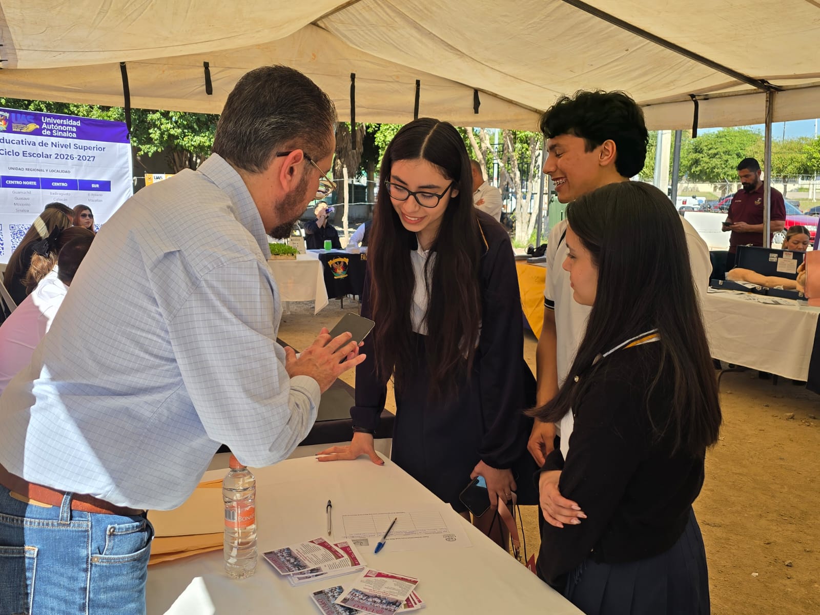 Agradecemos profundamente la presencia de las instituciones de educación superior que hoy hacen posible este gran esfuerzo en favor de nuestra juventud: Universidad Autónoma de Sinaloa, Universidad Autónoma de Occidente, Instituto Politécnico Nacional, Universidad Autónoma de Durango, UPES, Universidad de Los Mochis, UNIVAFU, Universidad Tecnológica y Politécnica del Valle del Carrizo, UAIM, Escuela de Aviación Personalizada, Escuela de Técnicos en Radiología del Noroeste y Servicio Nacional de Empleo.