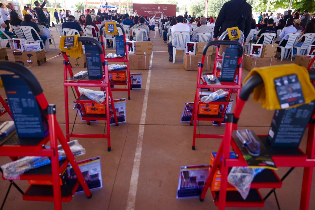 Navolato, Sinaloa. – Comprometido con el desarrollo de los emprendedores y microempresarios mediante la promoción del autoempleo y fortalecer economías locales, que mejoren la calidad de vida de las familias sinaloenses, el Gobernador Rubén Rocha Moya, mediante el programa Equipa Sinaloa, entregó 498 equipamientos a 104 beneficiarios en el municipio de Navolato.