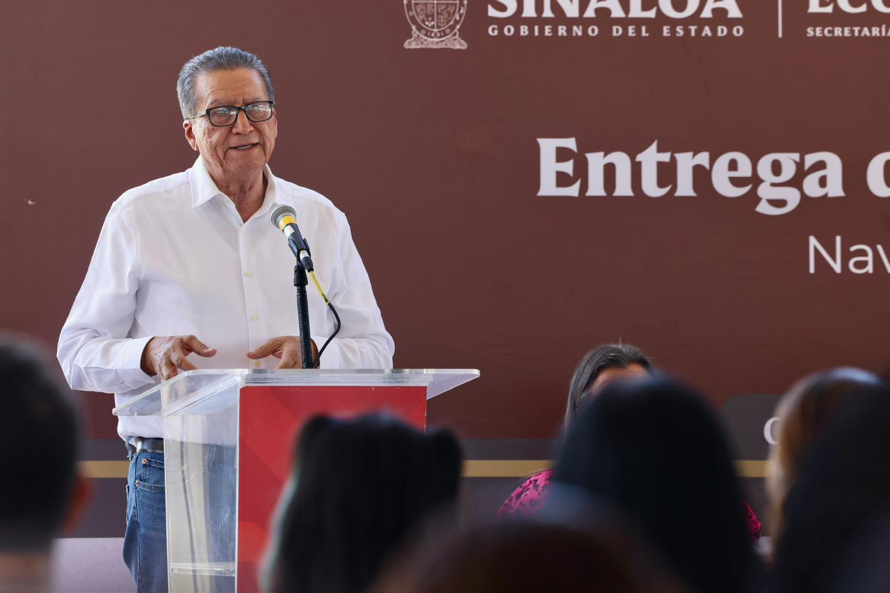 Acompañado del alcalde Jorge Bojórquez Berrelleza, el Gobernador Rocha, mencionó que este es un programa insignia de su gobierno, que ha llegado a los 20 municipios del estado, entregando equipamiento productivo y herramientas de capacitación técnica que fomenten el autoempleo y estabilidad económica.