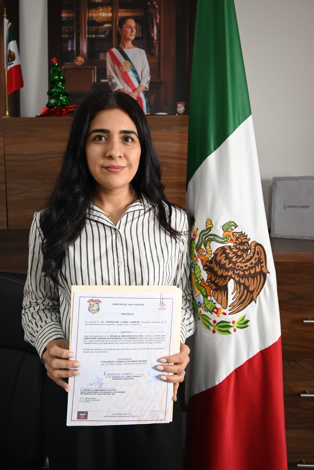 Juan José Ríos, Sinaloa. – La alcaldesa Evangelina Llanes Carreón tomó protesta oficial a Drusille Amin Montoya Cota como nueva titular de la Dirección General de Desarrollo Económico Municipal.