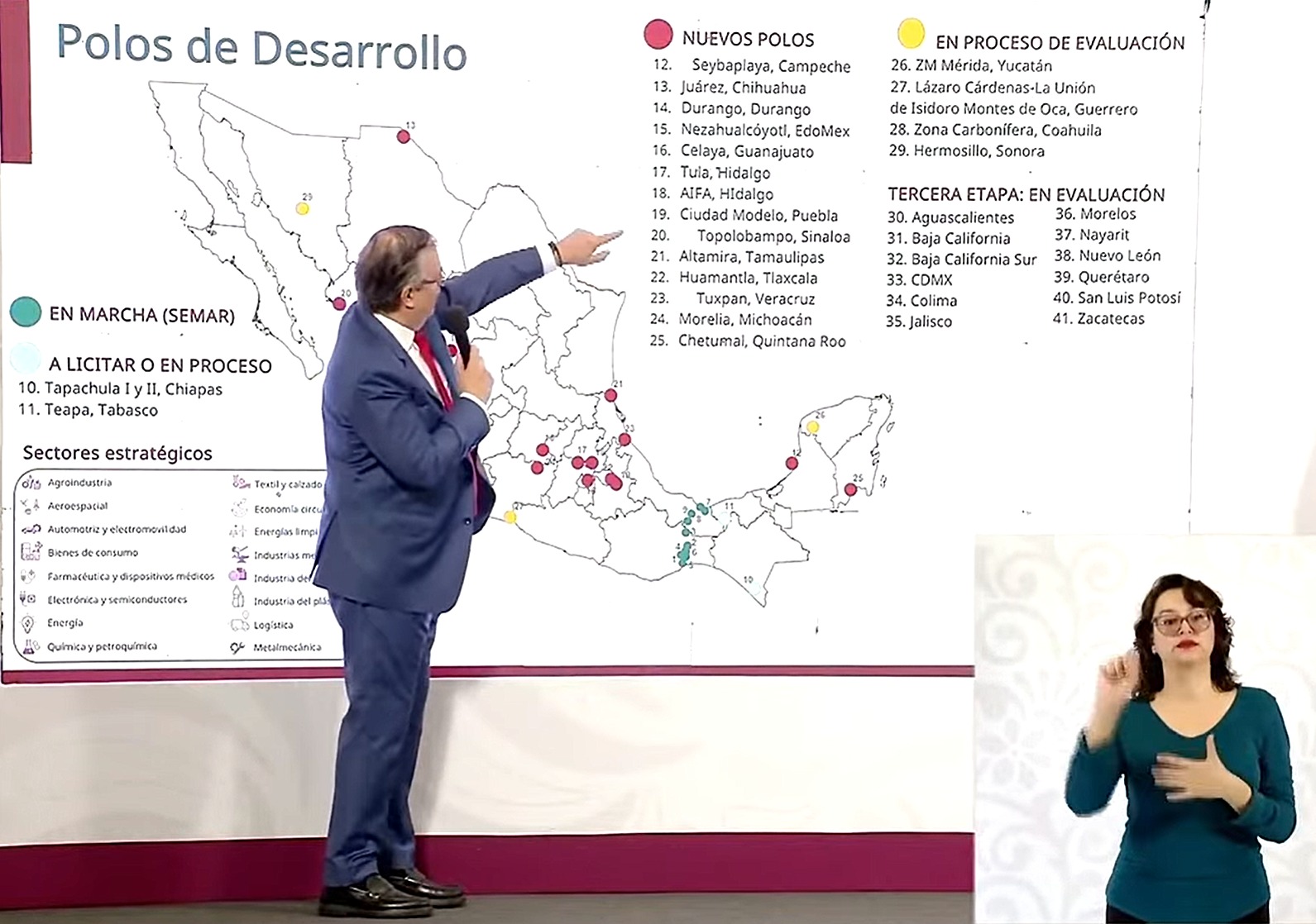 CDMX. – El secretario de Economía, Marcelo Ebrard, presentó el ambicioso programa de Polos de Desarrollo del Bienestar, una estrategia del gobierno federal para detonar el crecimiento económico equilibrado en todo el país.