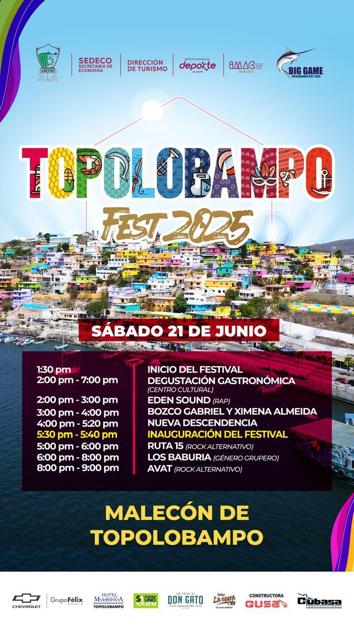 La sede del TOPOLOBAMPO Fest 2025, es el Malecón del puerto, de las 13:30 a las 23 horas.