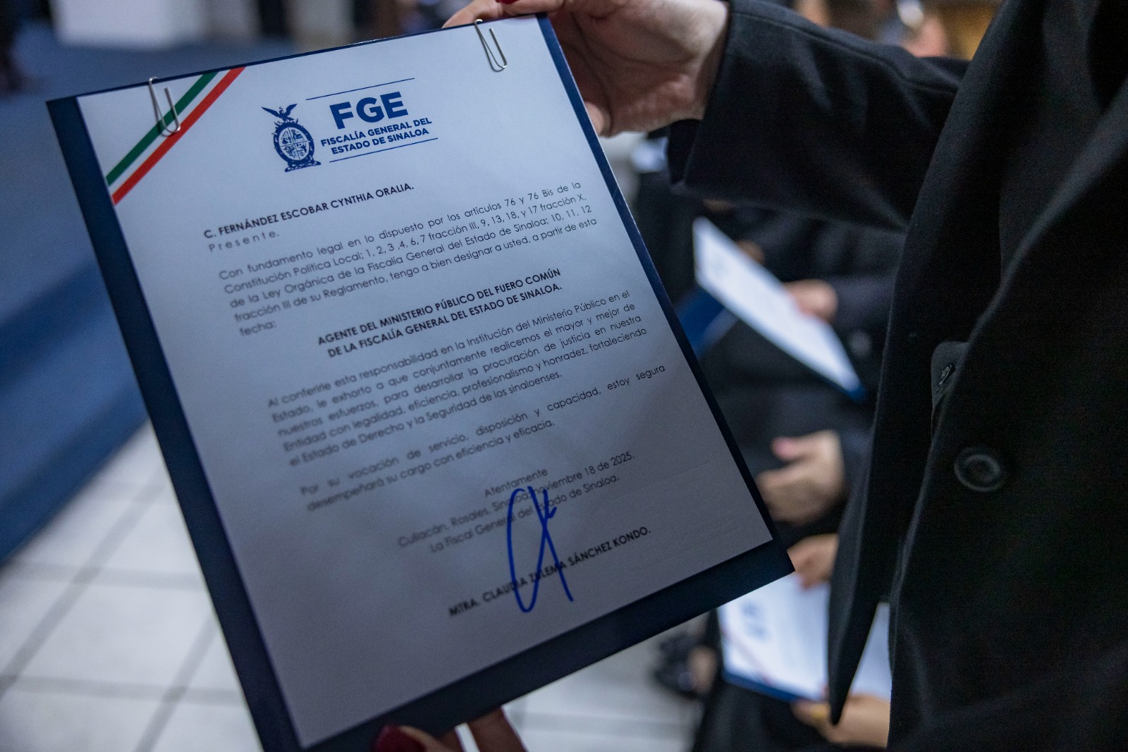 El mandatario estatal acudió a las instalaciones de la Fiscalía General del Estado, donde fue recibido por su titular, Claudia Zulema Sánchez Kondo, y en compañía de la secretaria general de Gobierno, Yeraldine Bonilla Valverde; del presidente del Supremo Tribunal de Justicia, magistrado Jesús Iván Chávez Rangel; y del rector de la UNIPOL, José Carlos Álvarez Ortega, entregó sus nombramientos a 30 nuevos agentes del Ministerio Público, 29 agentes de la Policía de Investigación, y 10 peritos, quienes culminaron sus respectivos cursos de formación inicial el pasado 25 de octubre.