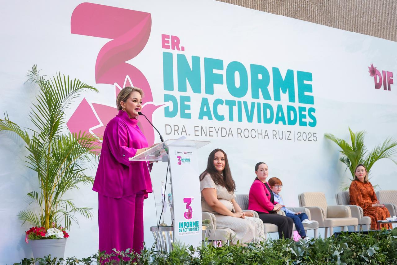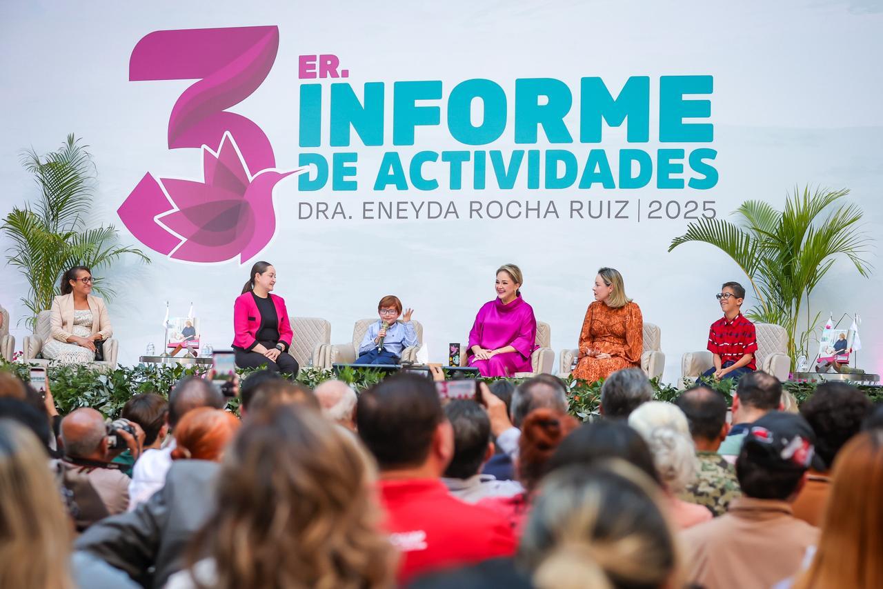 Culiacán, Sinaloa. – Con un enfoque centrado en la dignidad humana y la atención directa en el territorio, Eneyda Rocha Ruiz presentó su 3er Informe de Actividades del Sistema DIF Sinaloa. El documento sintetiza una gestión marcada por la justicia social, logrando impactar a los 20 municipios del estado a través de programas de salud, alimentación e inclusión.