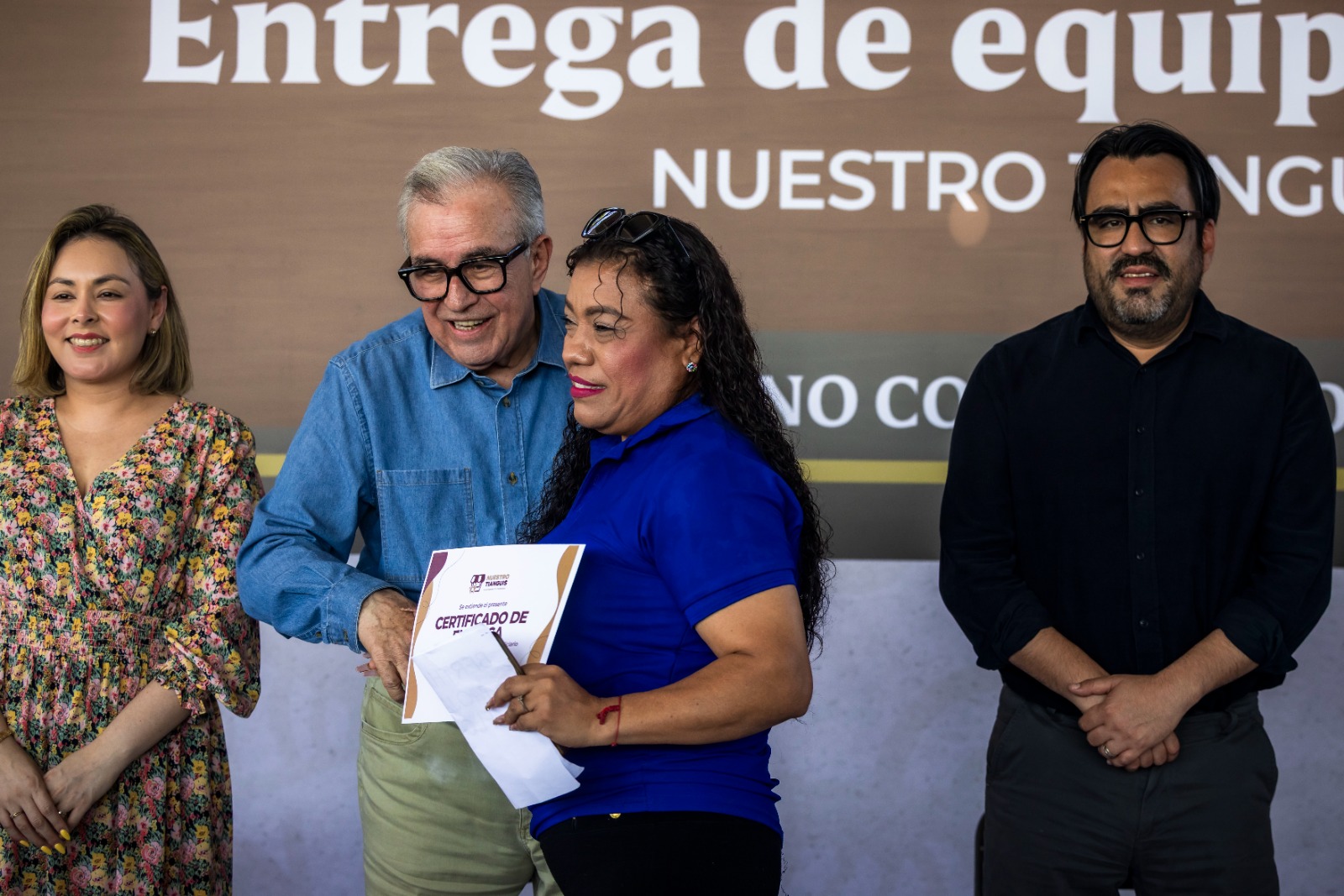 Acompañaron al Gobernador Rocha, Yeraldine Bonilla Valverde, secretaria General de Gobierno; Ricardo Alberto Cansdale, representante de tianguistas; así como, las y los beneficiarios del programa.