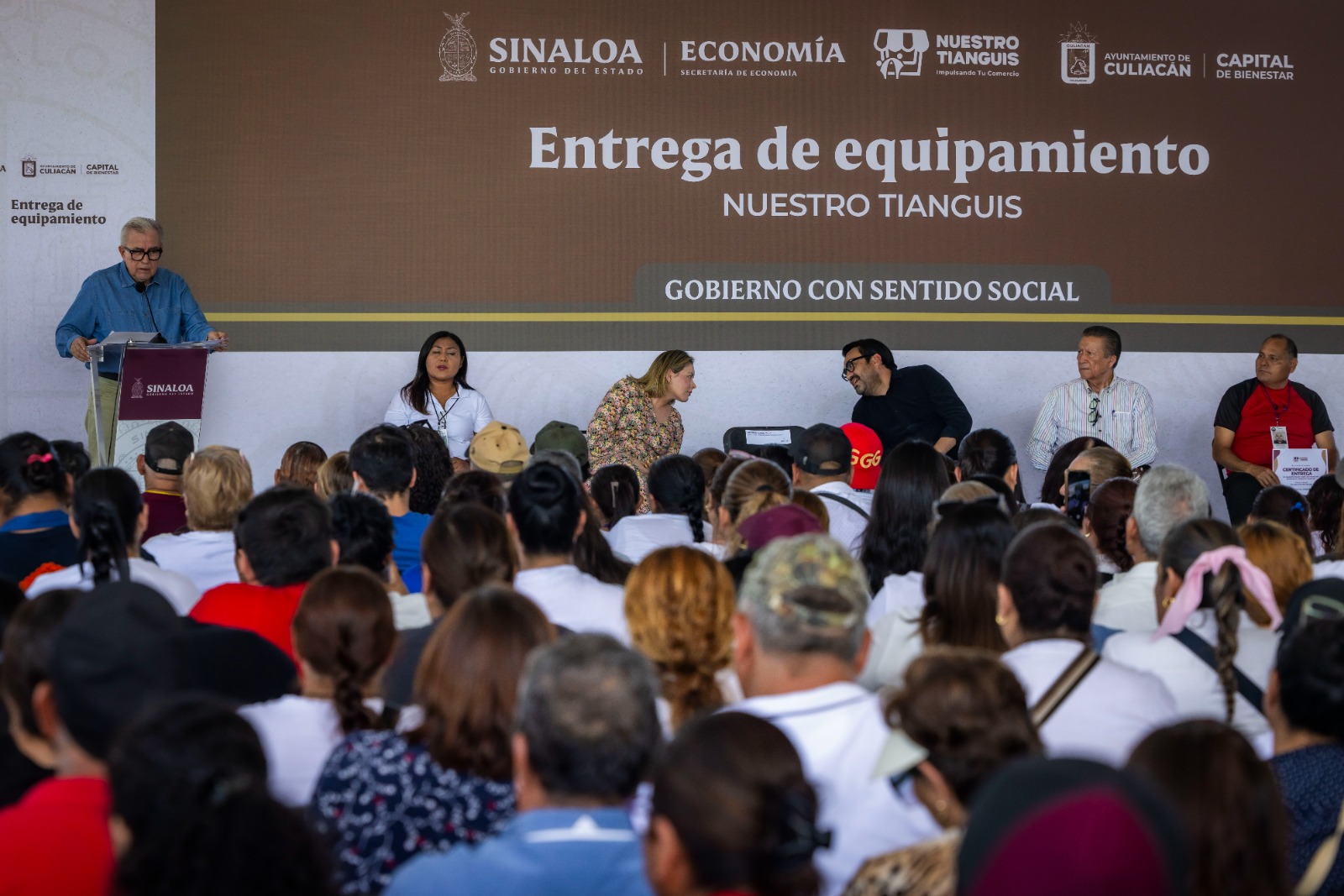 Culiacán, Sinaloa. – Impulsando el desarrollo económico popular y el autoempleo, el gobernador Rubén Rocha Moya, encabezó este miércoles la entrega de 300 apoyos del programa “Nuestro Tianguis”, una iniciativa estatal que ofrece herramientas de capacitación y equipamiento gratuito para mejorar el negocio de los pequeños comerciantes, con ello, dignificando el trabajo de las y los tianguistas brindándoles herramientas para mejorar sus ingresos y condiciones de trabajo.
