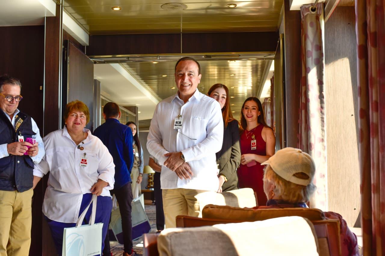 La confianza que tienen los operadores de estos navíos y las agencias de turismo en tocar puerto en Topolobampo nos llena de gusto. Invito a toda la ciudadanía a convertirnos en buenos anfitriones, a mostrar lo mejor de nosotros, la amistad y la amabilidad que nos caracteriza. Con eso garantizamos que los visitantes se vayan con un buen sabor de boca y con deseos de regresar”, expresó.
