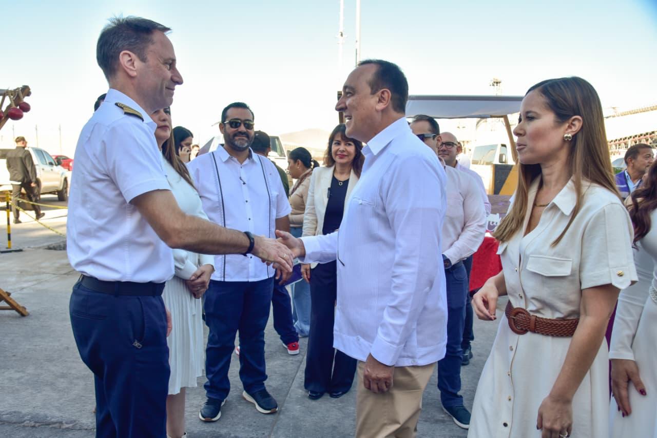 Durante el protocolo oficial, el Presidente Municipal de Ahome, Antonio Menéndez De Llano Bermúdez, destacó la importancia de la confianza que las navieras depositan en el puerto.