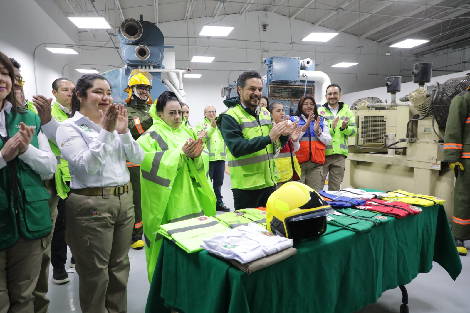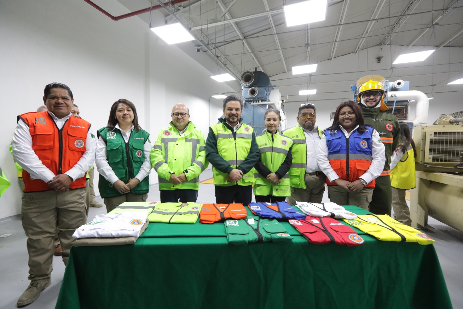 En el Centro Nacional de Simulación de Mantenimiento y Conservación de Unidades Médicas, ubicado en Ticomán, Ciudad de México, se distribuyeron 93 mil chalecos de siete colores para brigadas de dos mil 417 unidades internas; cinco mil 500 impermeables; mil 500 uniformes para la estructura nacional de Protección Civil; 550 chalecos verde limón; así como mil 110 trajes de bombero destinados a 242 unidades médicas de Segundo Nivel de atención y a 25 Unidades Médicas de Alta Especialidad (UMAE).