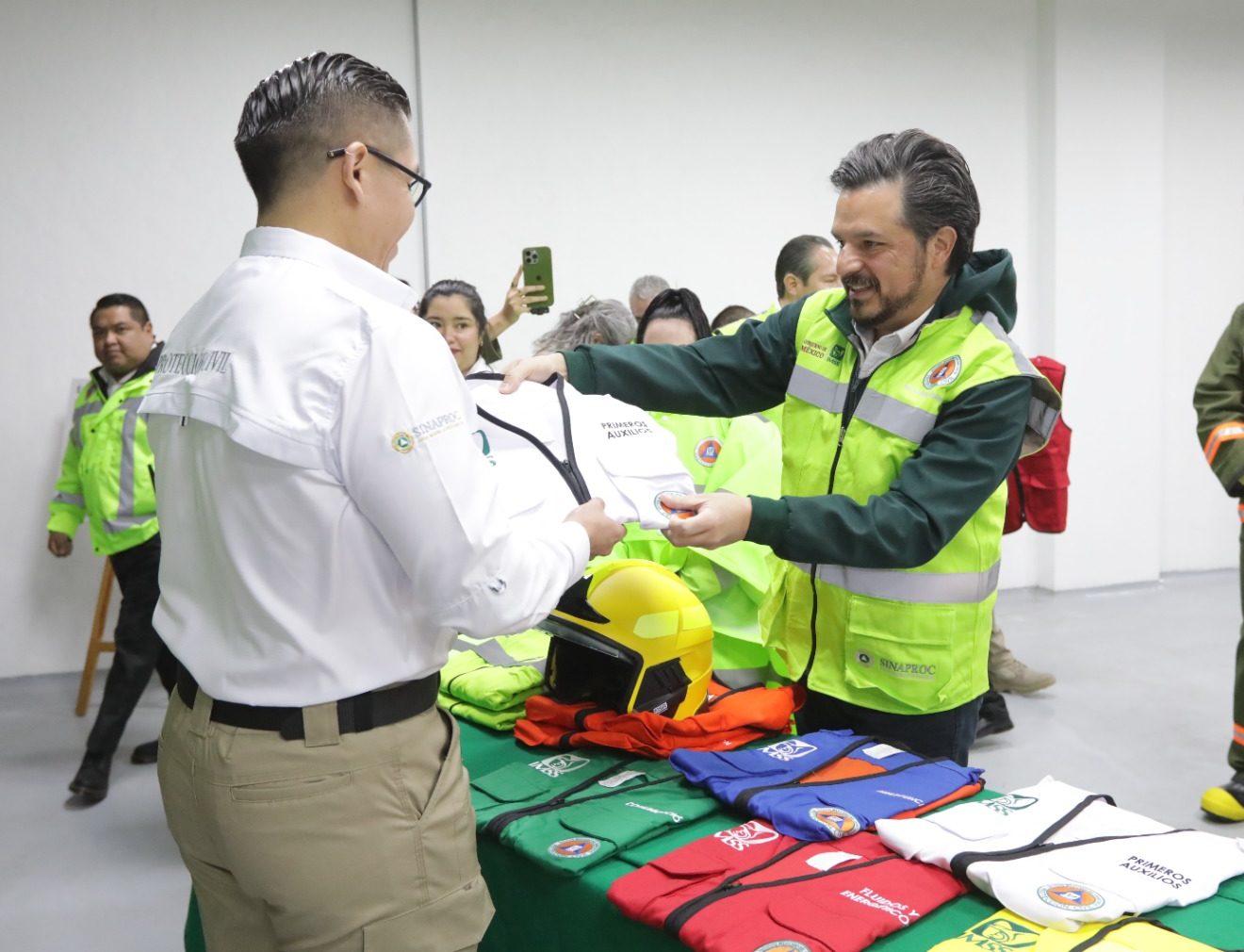 El acto fue encabezado por el director general, Zoé Robledo, quien entregó los primeros chalecos y trajes de bombero, considerados equipo de seguridad indispensable para proteger la integridad del personal y de las personas usuarias en inmuebles médicos y no médicos.
